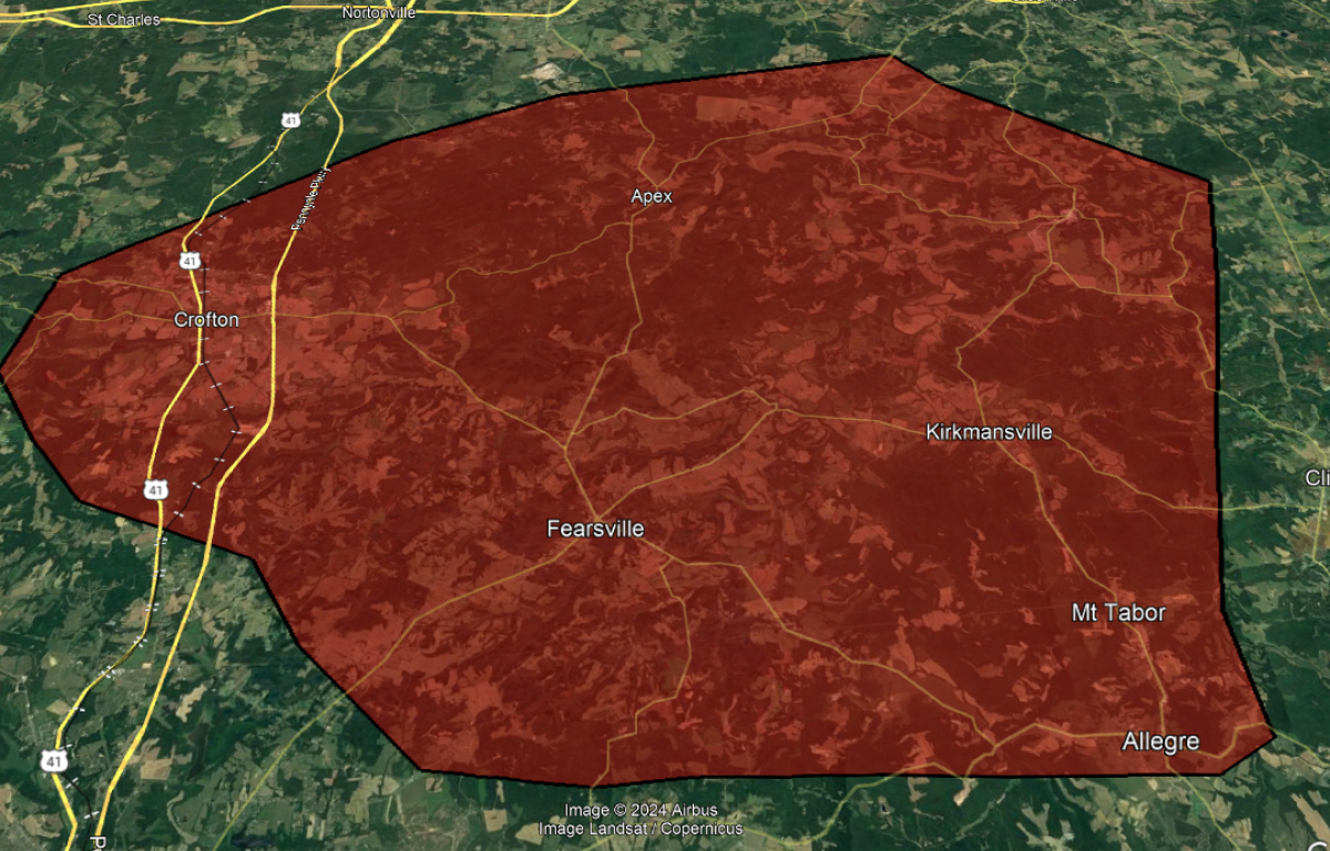 The outage will mostly cover areas surrounding Fearsville, Crofton and a large area in the county as the TVA temporarily shuts down the Fruit Hill Substation. The estimated four-hour outage will begin at midnight heading into Sunday on Oct. 20. According to Pennyrile Electric, 2,669 members will be affected overnight during repairs.