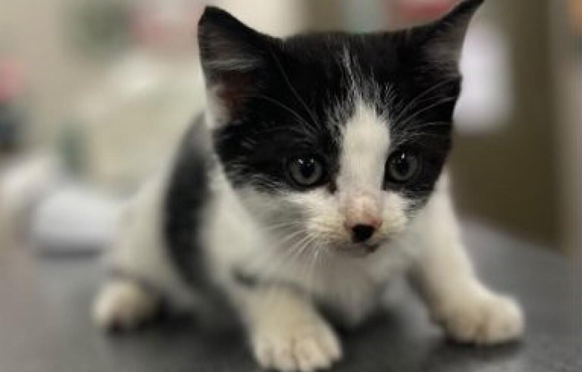Introducing Bandit, an adorable 6-week-old Black and White Domestic Short Hair kitten with a big personality packed into his tiny 1-pound frame! This little guy may have started life as a stray, but he’s quickly learning that people can be pretty great.
