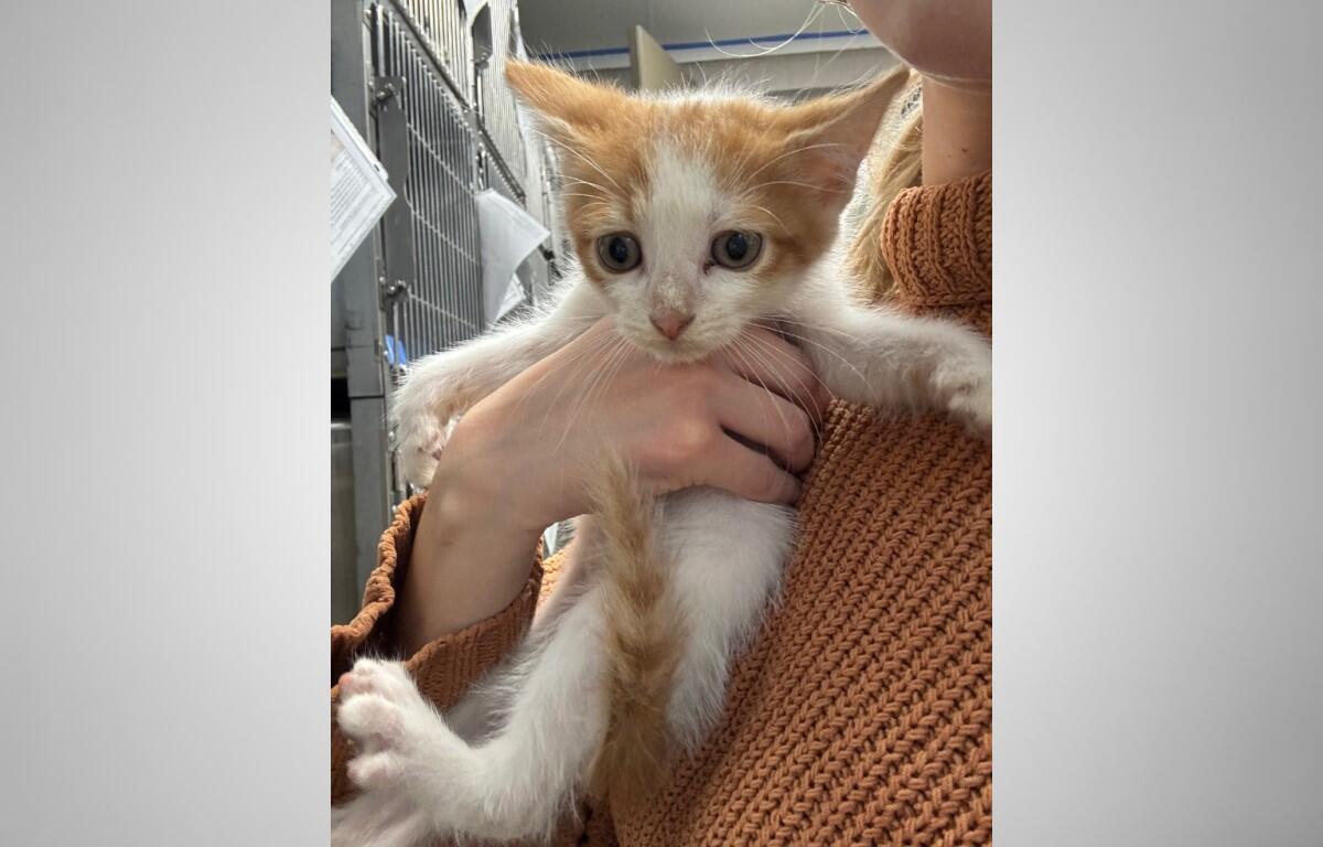 Meet Pumpkin! This handsome boy is a six-week-old orange and white domestic shorthair kitten, and he is currently looking for his forever home! Pumpkin was owner surrendered to the shelter because his family already had too many pets. This sweet boy will easily adapt to a home with cats, dogs, and kiddos, we also offer trial adoptions and meet and greets to ensure he finds his pawfect home. Pumpkin is litterbox trained, FIV/FLV/HW NEGATIVE, UTD on vaccinations, and is ready to be adopted today! Pumpkin’s adoption fee is $76 plus tax!