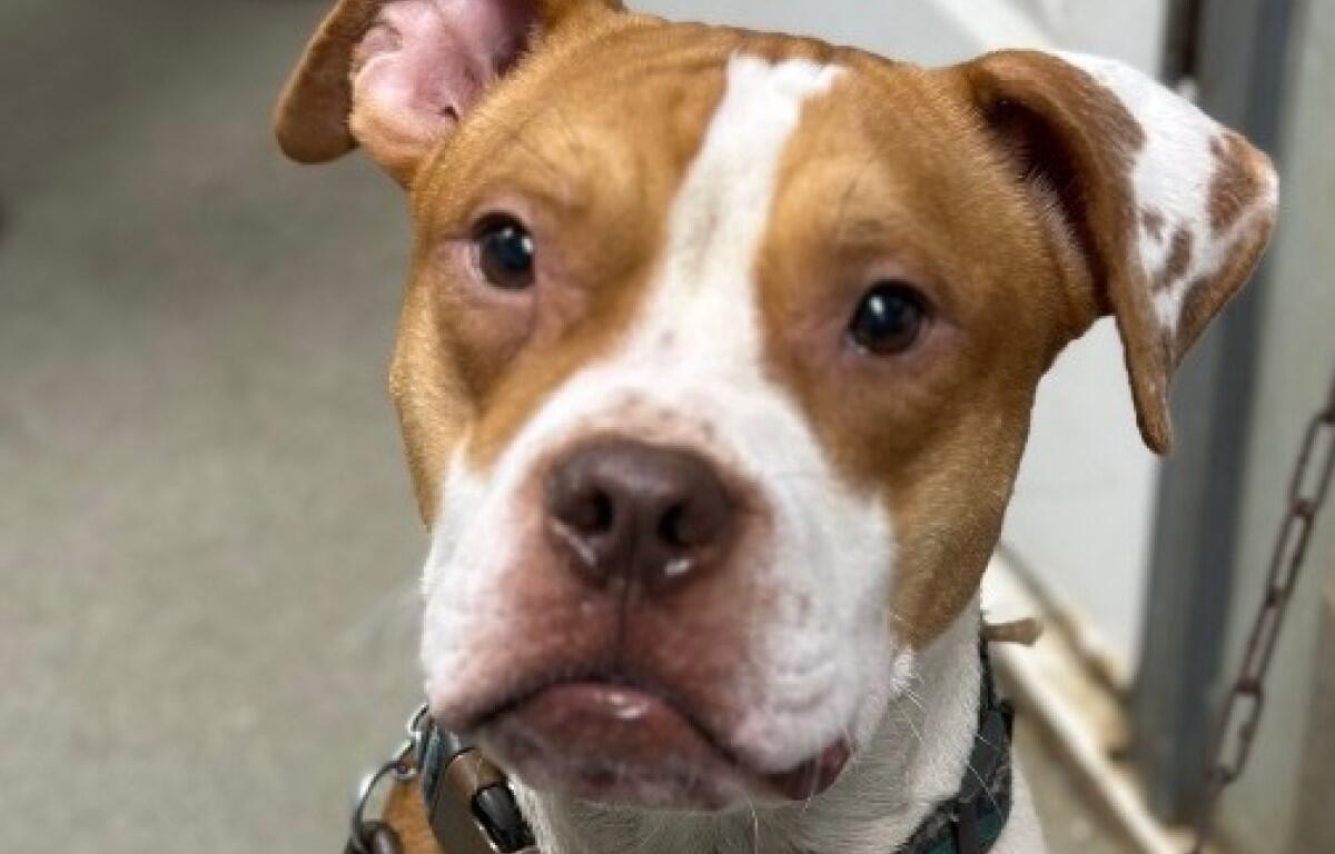 Meet Grom! He is a 2-year-old red and white Boxer mix who was brought to the shelter after being abandoned in his last home. Grom has now been at our shelter for a little over 2 months. He does great with everyone he meets, including children. He keeps his kennel pretty clean, but we cannot say for sure if he is housebroken. Grom could still learn anything you’d like to teach him! He has done great with other dogs and is currently kenneled with another. We do not know how he feels about cats, but don’t count him out! If you don’t feel comfortable fully adopting him without knowing if he’s housetrained or good with cats, we would be happy to do a trial adoption for you. Just make sure to bring cash. Grom is HEARTWORM NEGATIVE! He is a whopping 36 pounds of love. He has also been NEUTERED AND BROUGHT CURRENT ON VACCINES through the shelter’s GET EM DONE program. He is a NO CHARGE adoption.