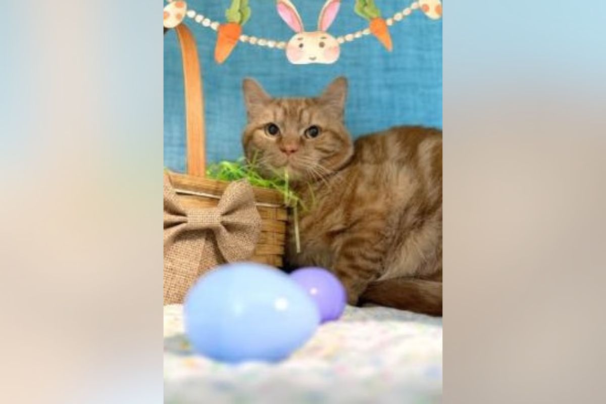 Meet Garfield — your purr-fect little Easter cuddle buddy. At just 1 year old and weighing 9.72 pounds, this handsome orange tiger Domestic Shorthair is ready to hop right into your life and fill it with love, laughs, and plenty of cozy snuggles. With his bright personality and classic orange charm, Garfield is sure to be the sweetest treat in your Easter basket this season!