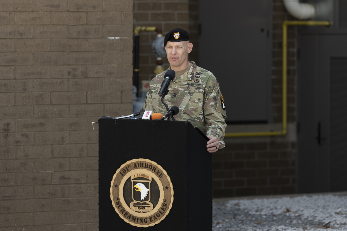 The ceremony included remarks from Maj. Gen. Brett Sylvia, the commander of the 101st Airborne Division (Air Assault) and Fort Campbell, and Sen. Mitch McConnell, Senate Minority Leader, followed by a tour of the facility.