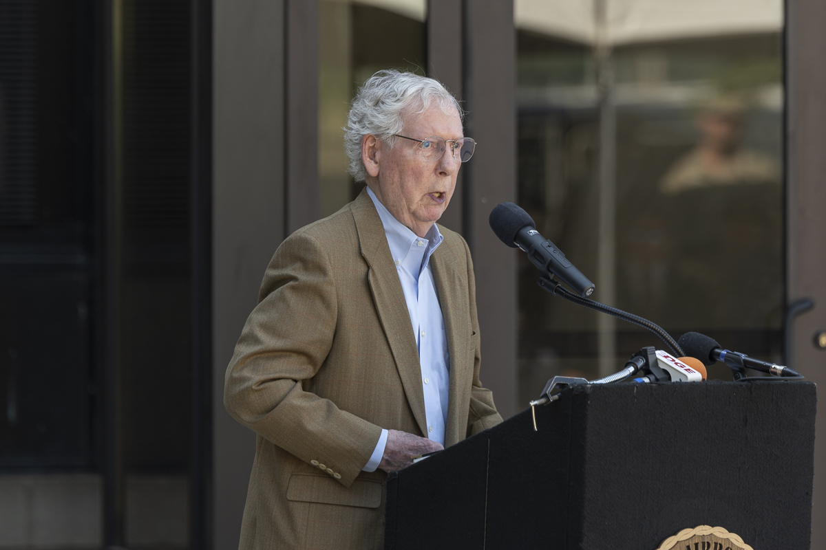 Senator Mitch McConnell speaking at the 1st BCT Volar Barracks Ribbon Cutting Ceremony. August 27, 2024 (Jeff Danault)