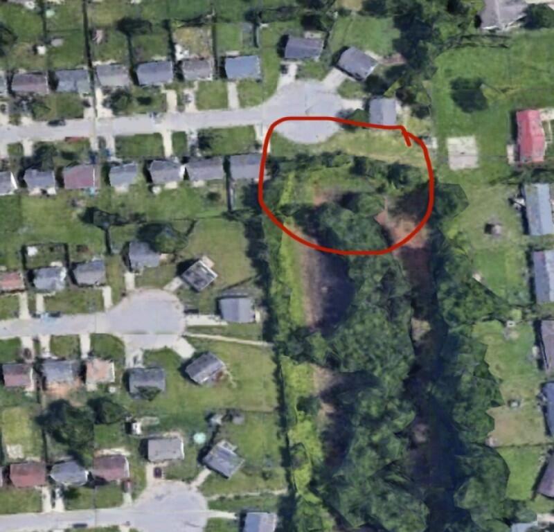The main roadblock with this proposed plan would be truck access, since the drainage basin is located centrally in the Shadow Ridge neighborhood, as circled in the photo. The best access point for construction access would be off of Timothy Avenue, contingent on the approval of the property owner who has yet to be contacted.