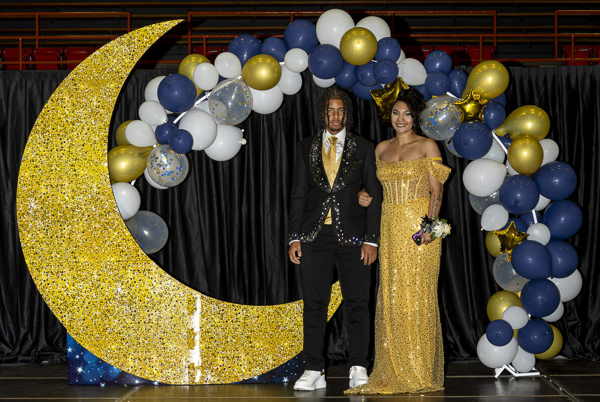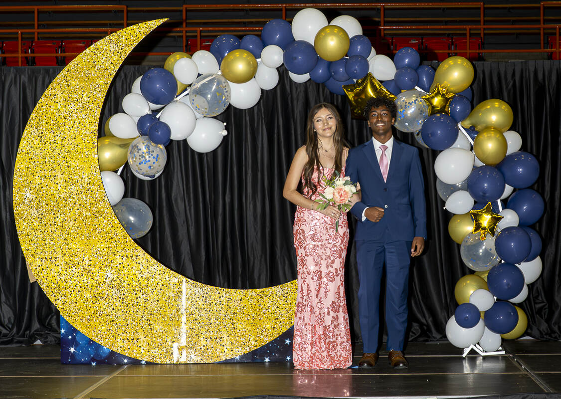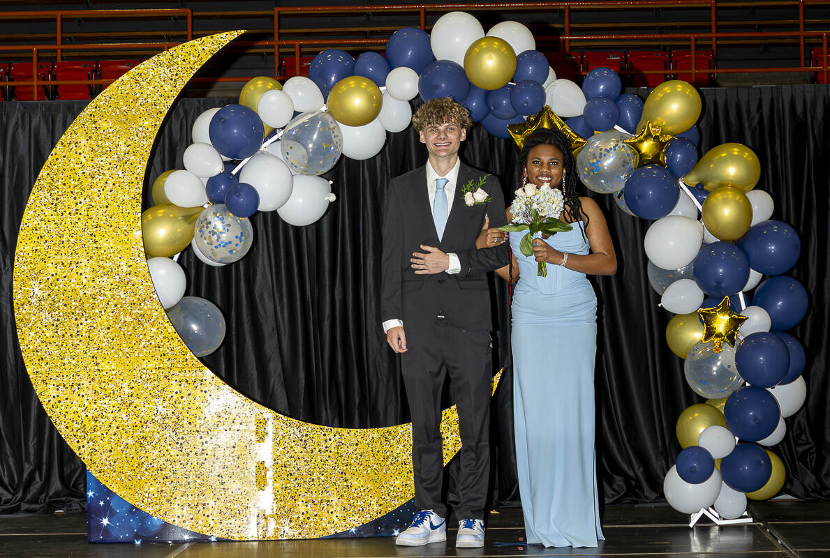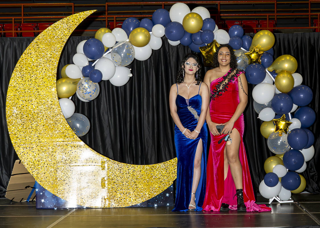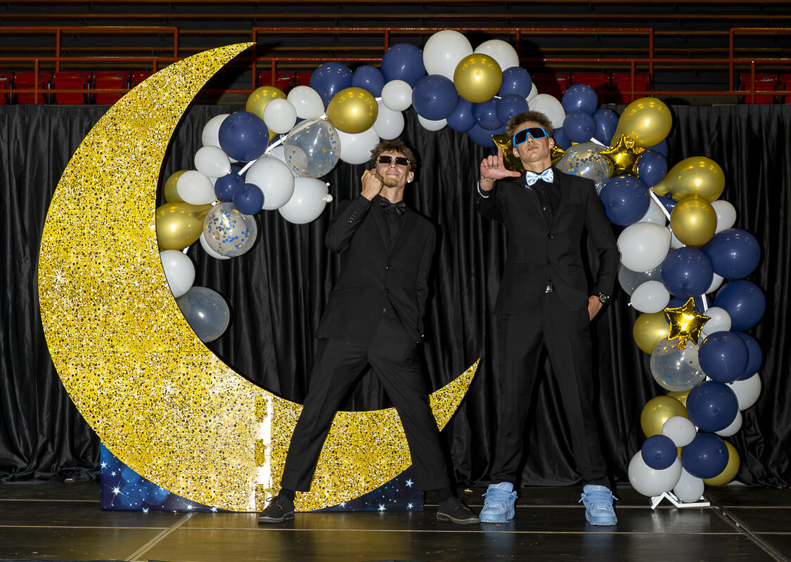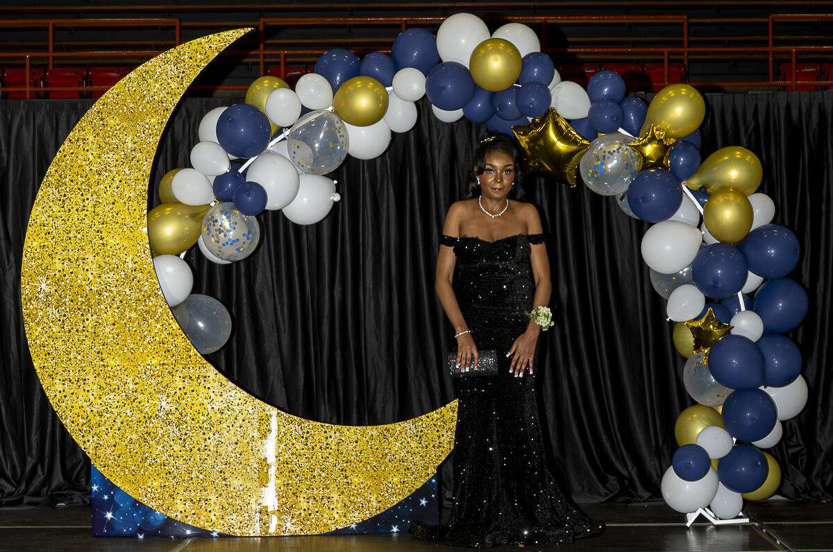 Students attended the prom entrance at the HHS gymnasium before a bus ride to the event.