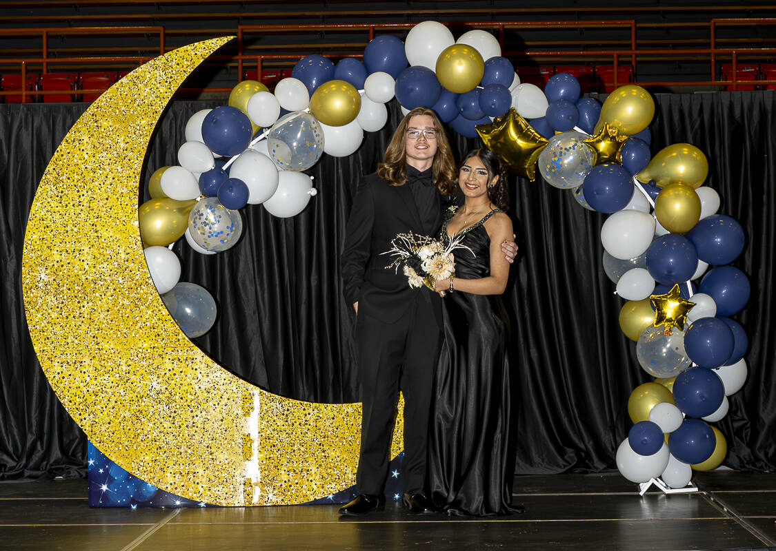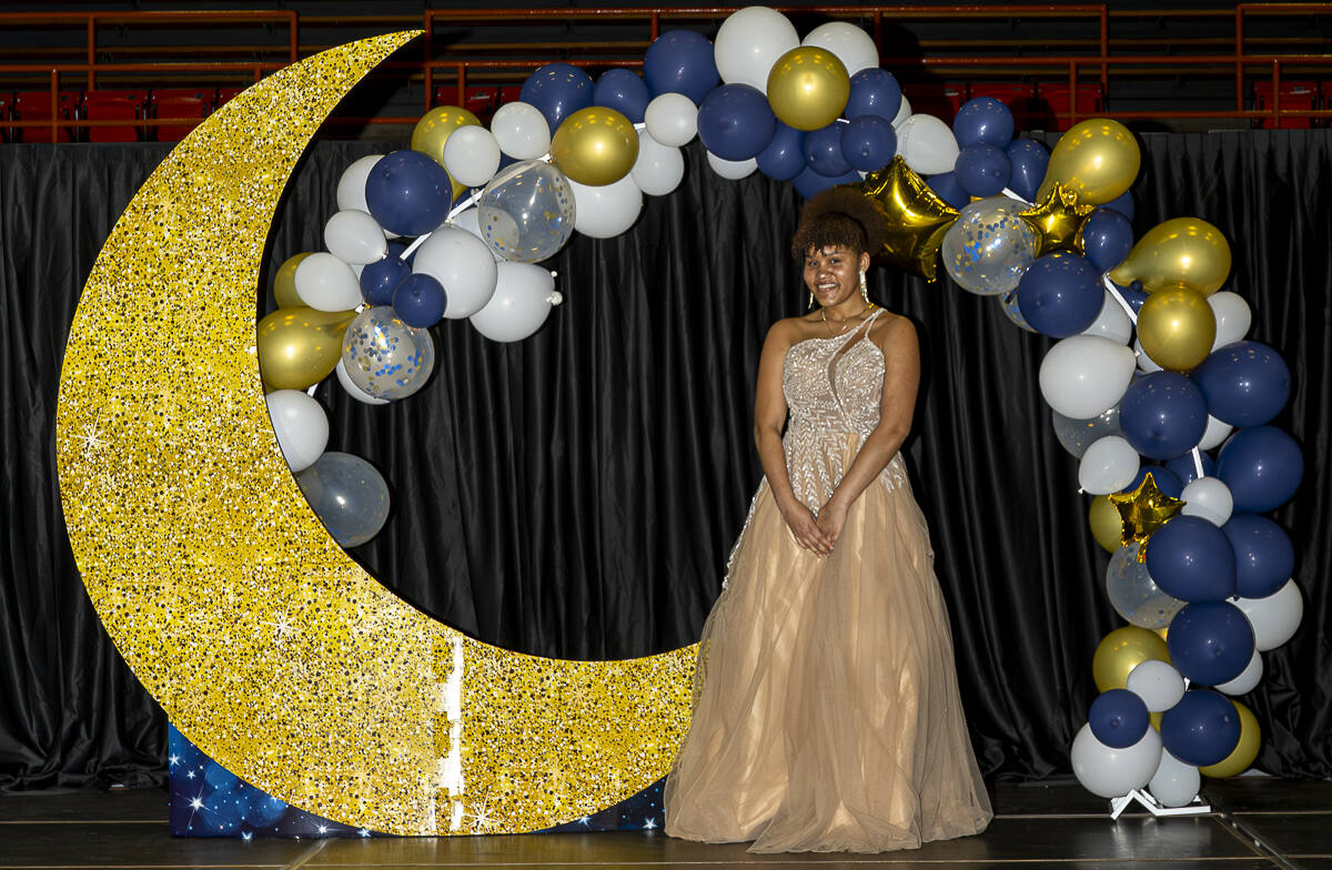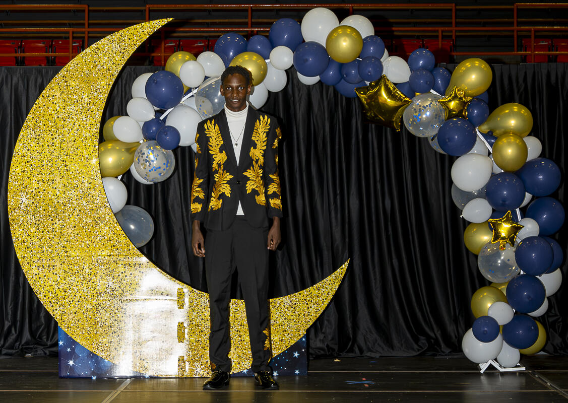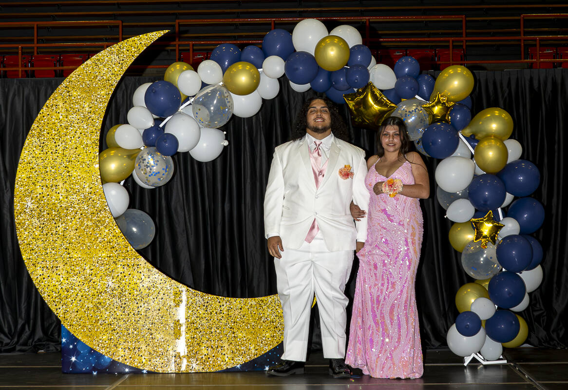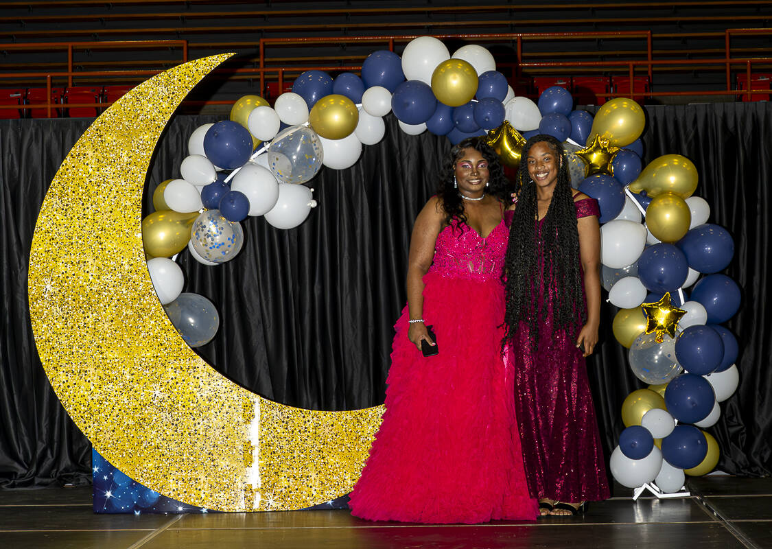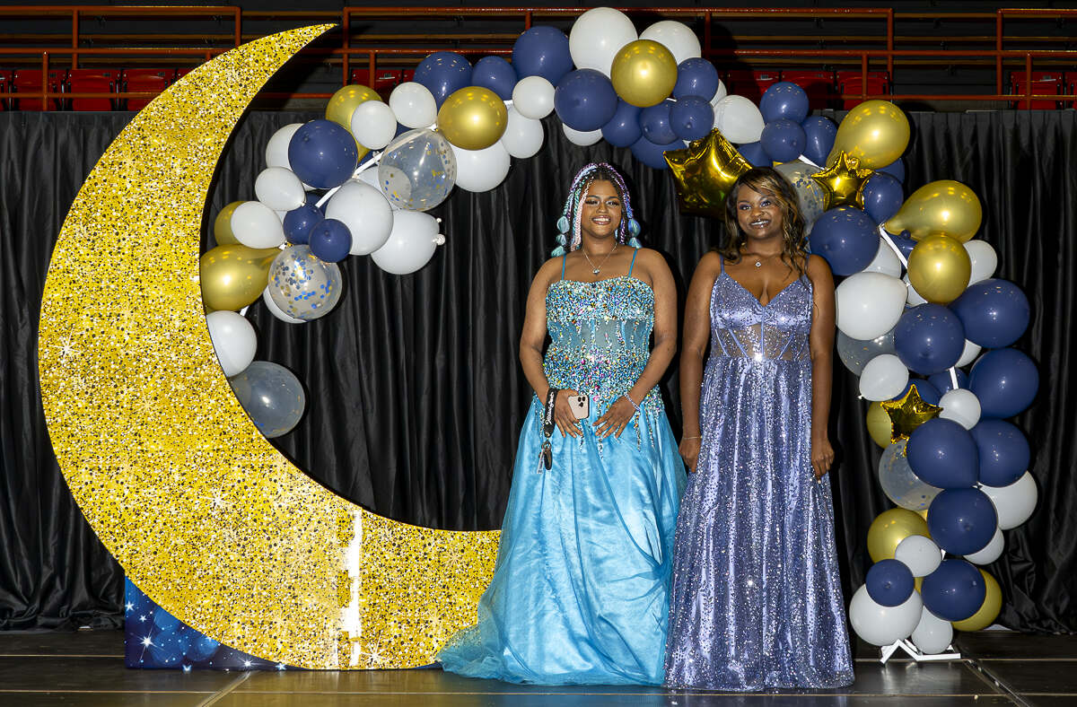 Students attended the prom entrance at the HHS gymnasium before a bus ride to the event.