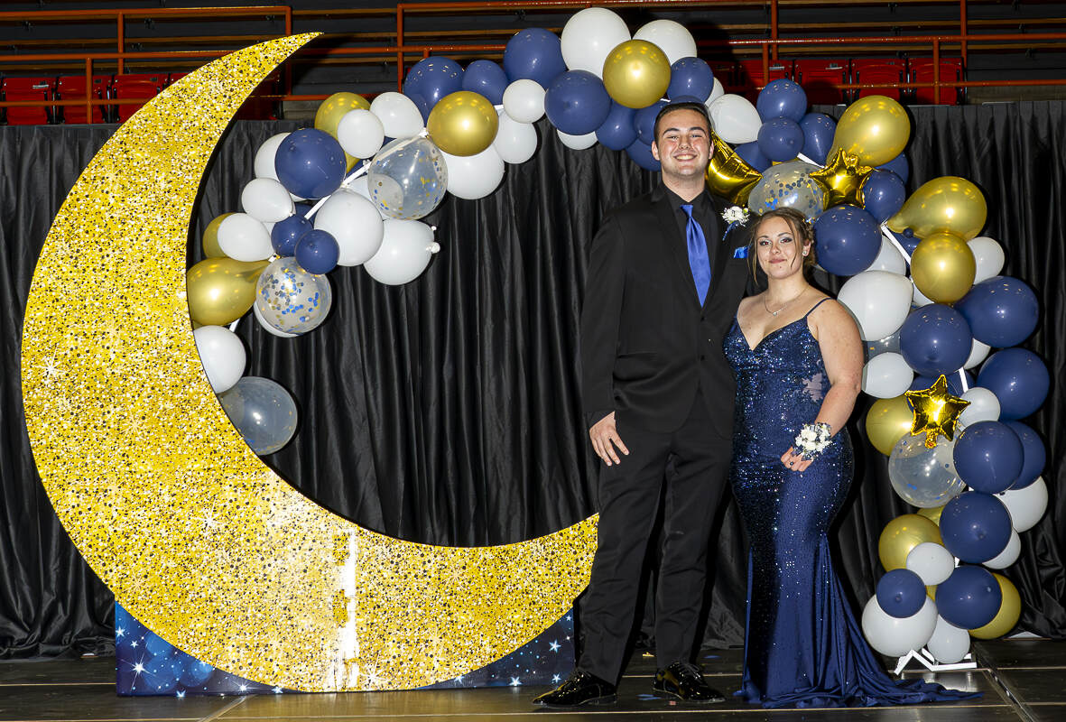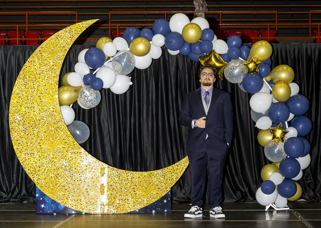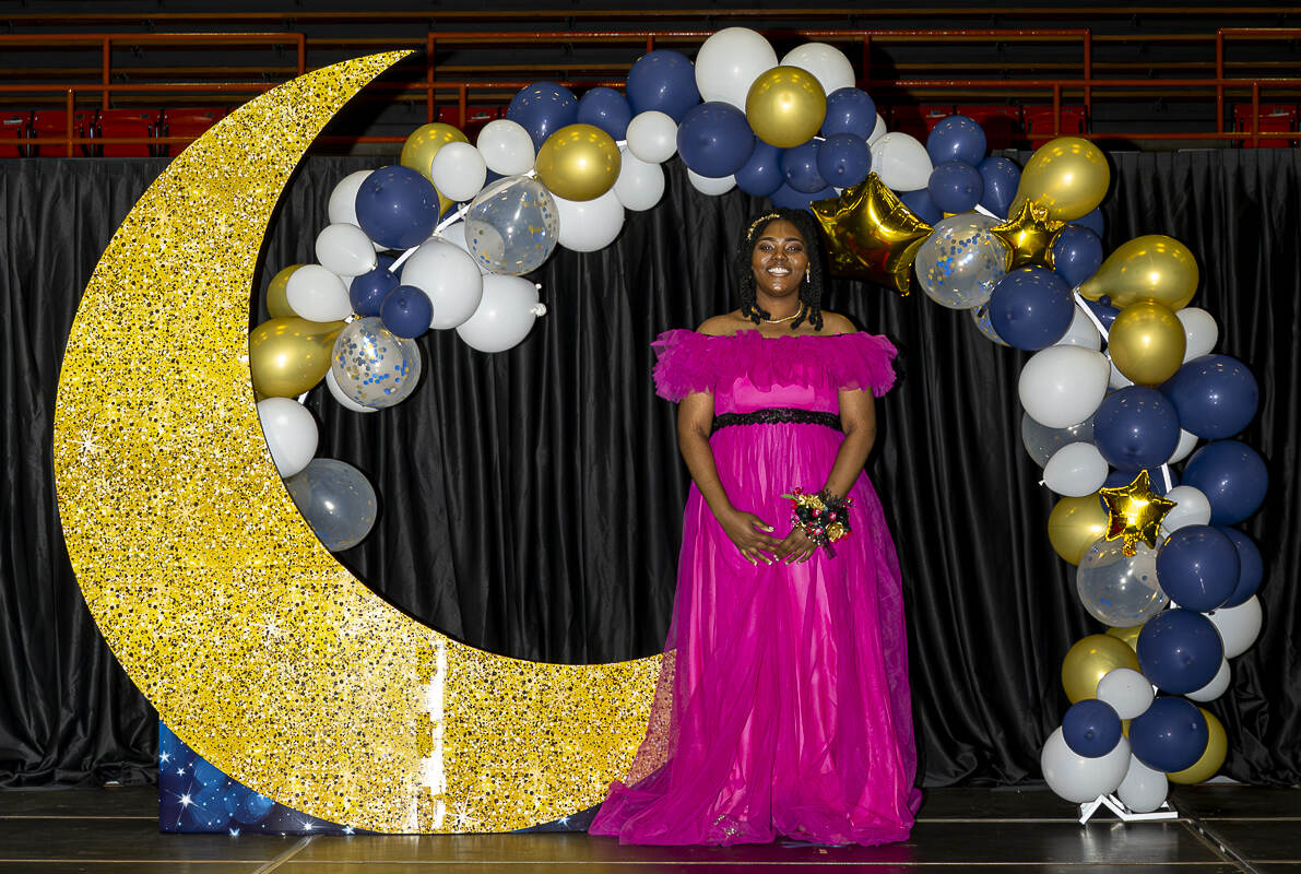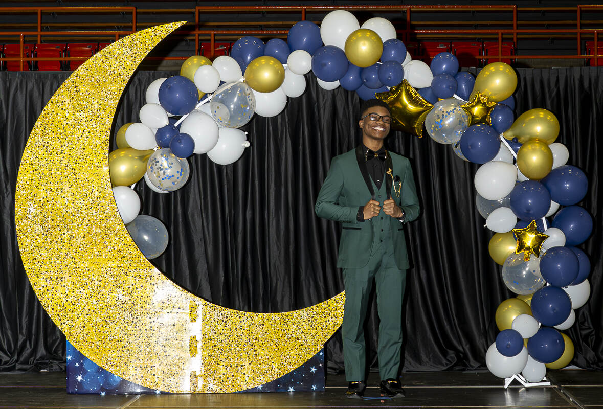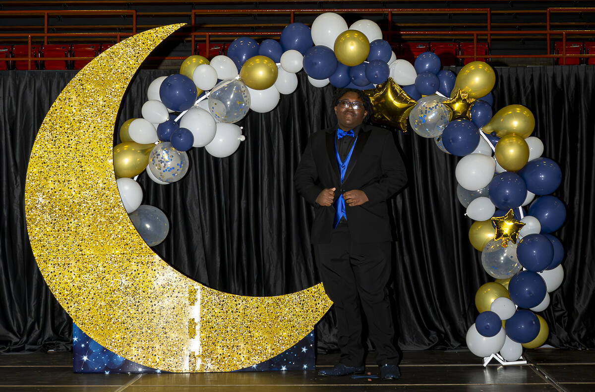 Students attended the prom entrance at the HHS gymnasium before a bus ride to the event.