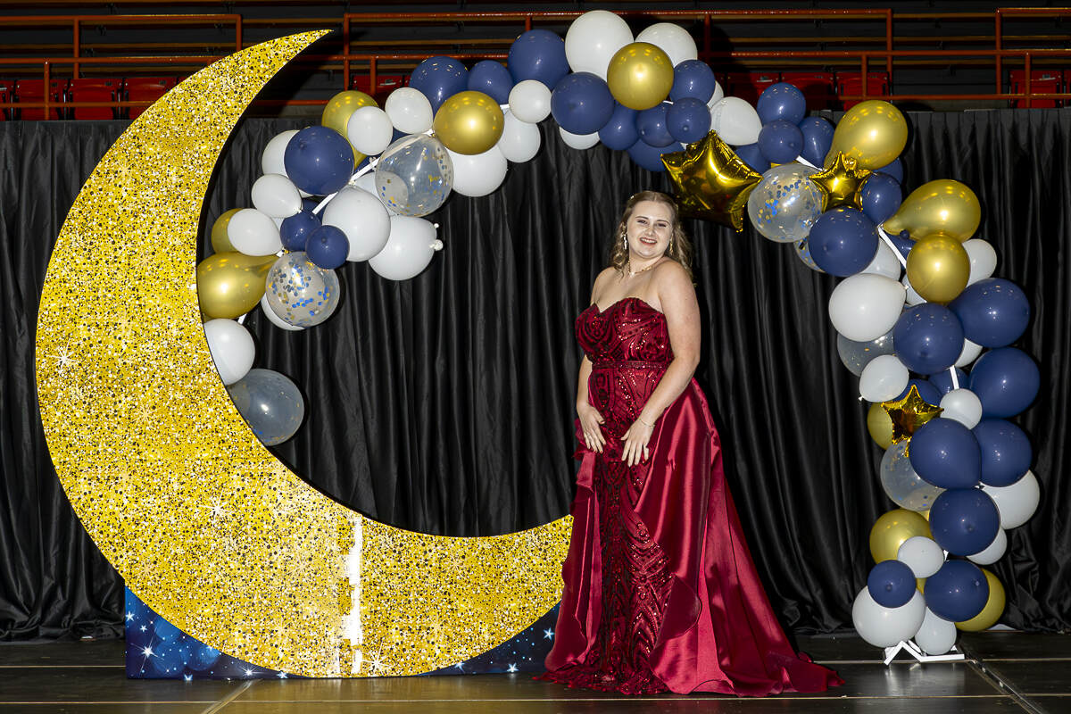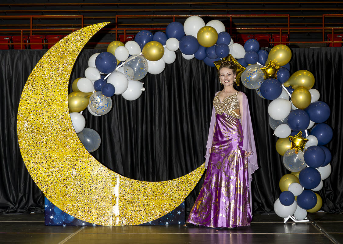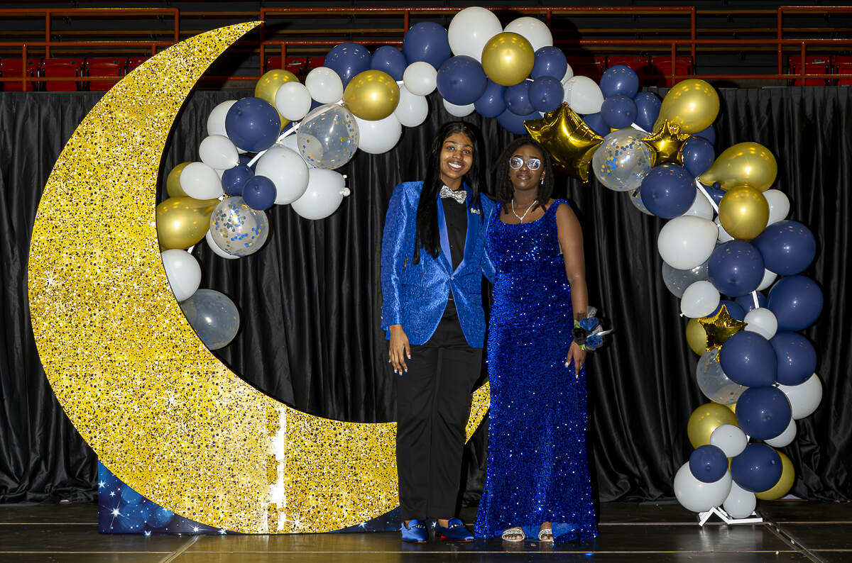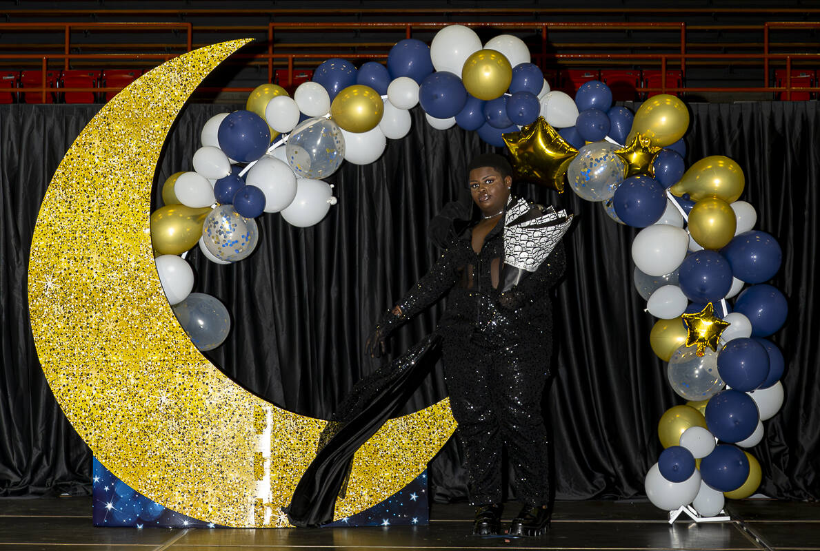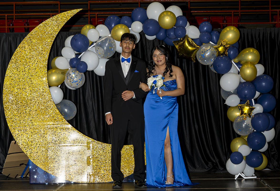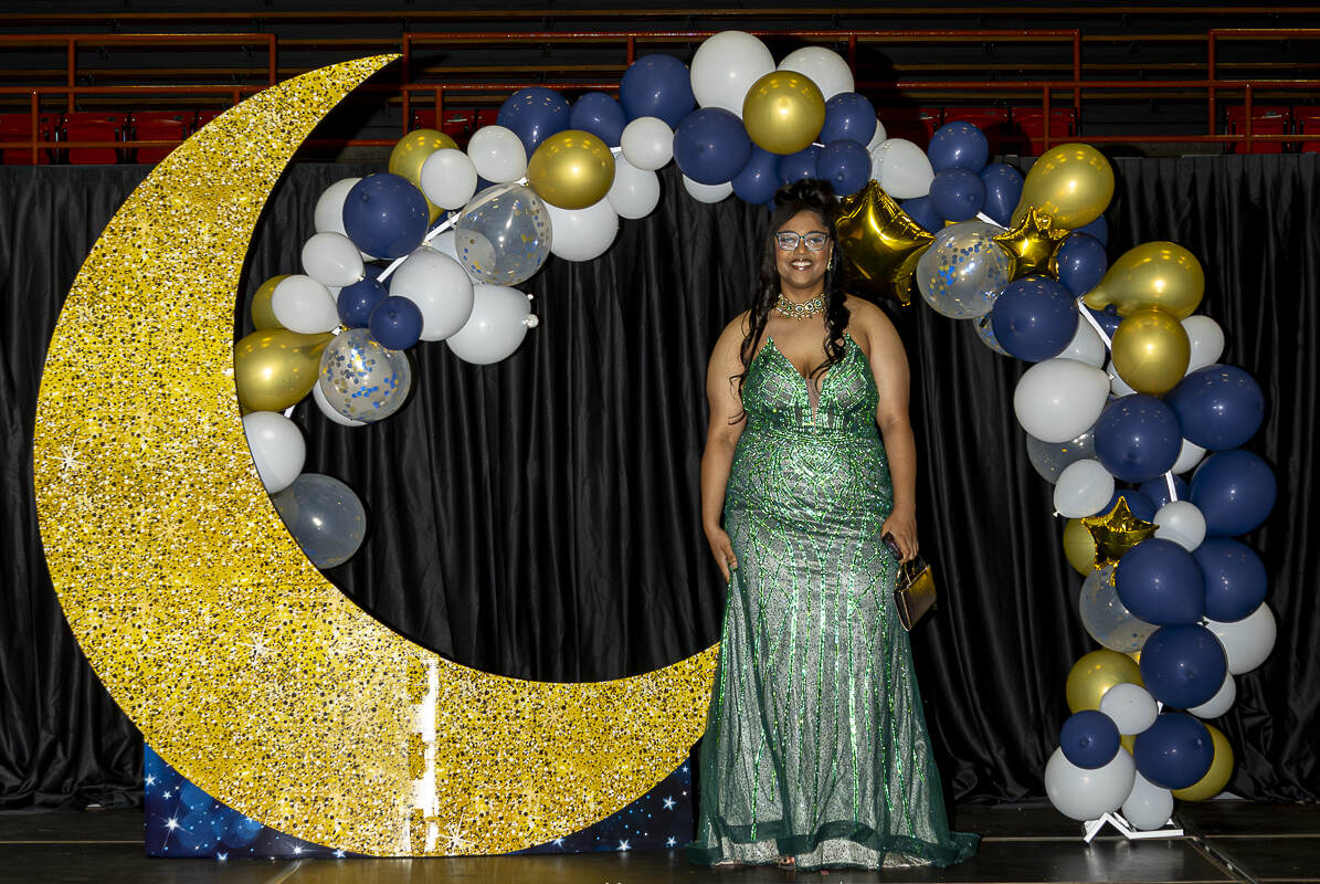 Students attended the prom entrance at the HHS gymnasium before a bus ride to the event.