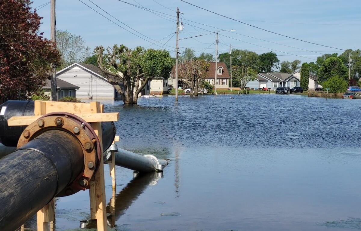 Instillation for the pump began last week, and it was activated the evening of April 19. The pipe is leading water under Pembroke Oak Grove Road, then feeding uphill over a mile away to nearby farmland. The overflow from the pumping will go into a creek, eventually spilling out into the Red River. Residents in this area are continuing to advocate for the city to make a plan to assist residents and prevent this from occurring again.