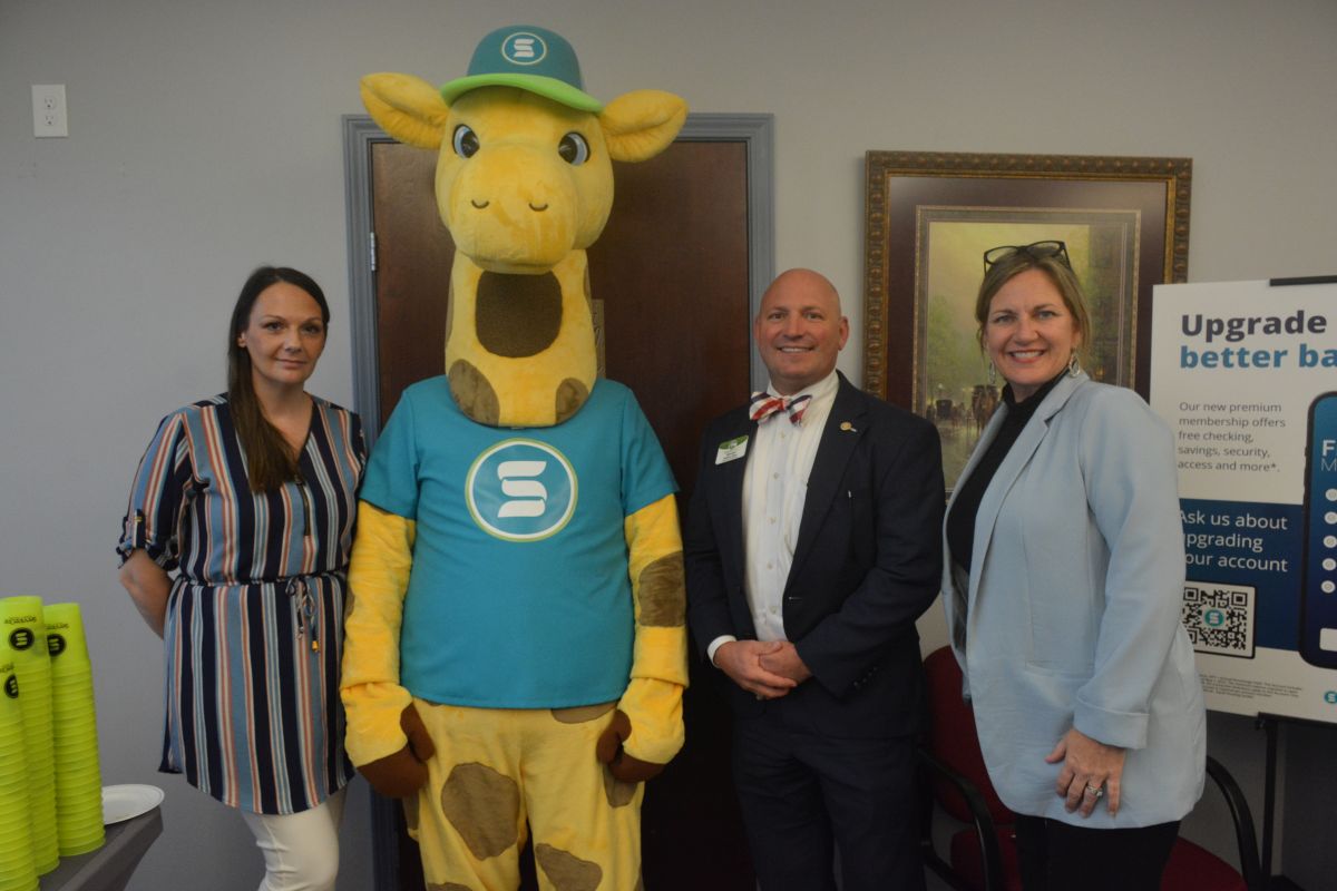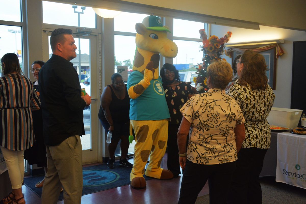 ServiceOne Mascot Jefferson and guests at the Christian County Chamber of Commerce Business After Hours hosted by ServiceOne Credit Union on, Sep. 7, 2023. (Lee Erwin)