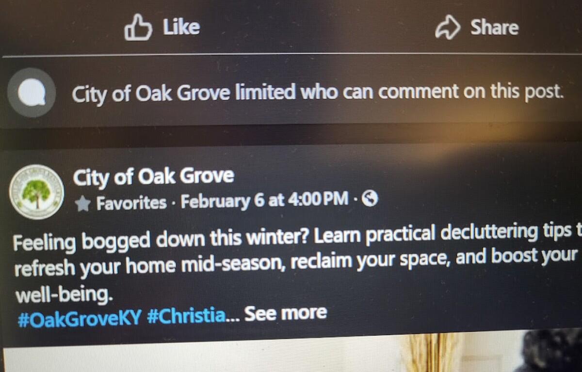 “These posts are intended to be strictly informational, and not to serve as a platform for public discussion,” said Oliver. The Oak Grove city attorney advised that this action does not interfere with city policy as long as specific individuals are not being targeted.