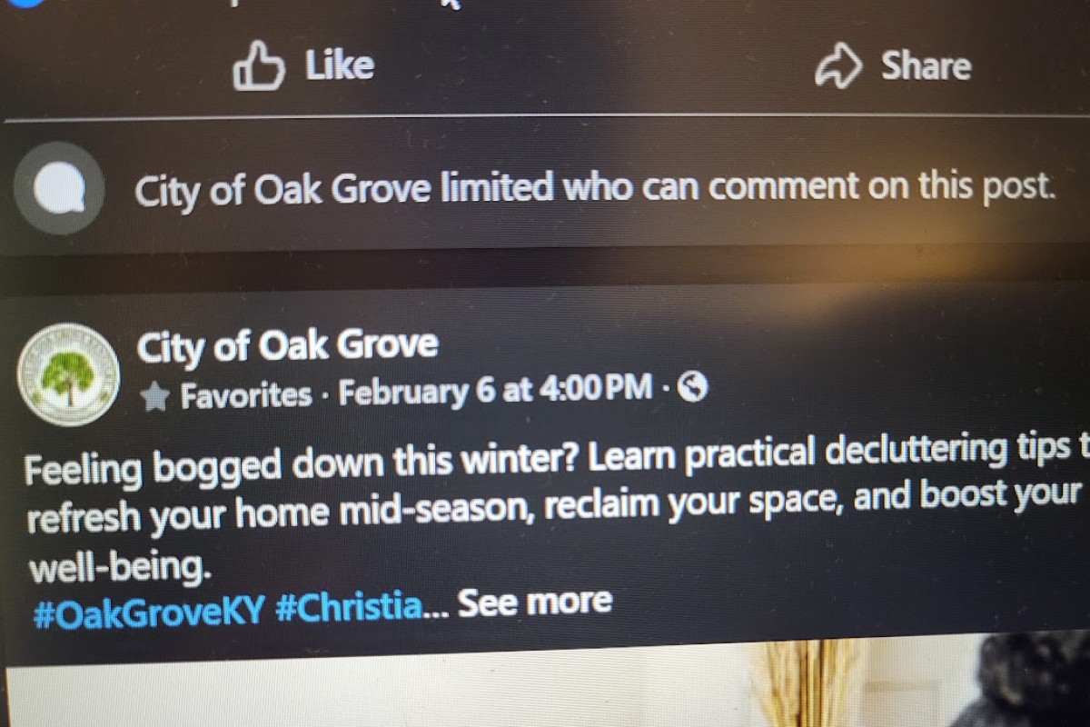 HOPKINSVILLE, KY (CHRISTIAN COUNTY NOW) – Oak Grove Mayor Jackie Oliver addressed recent discussion about disabling comments on certain social media posts by the city. the city’s social media. This is specifically in regard to the City of Oak Grove’s official Facebook page.