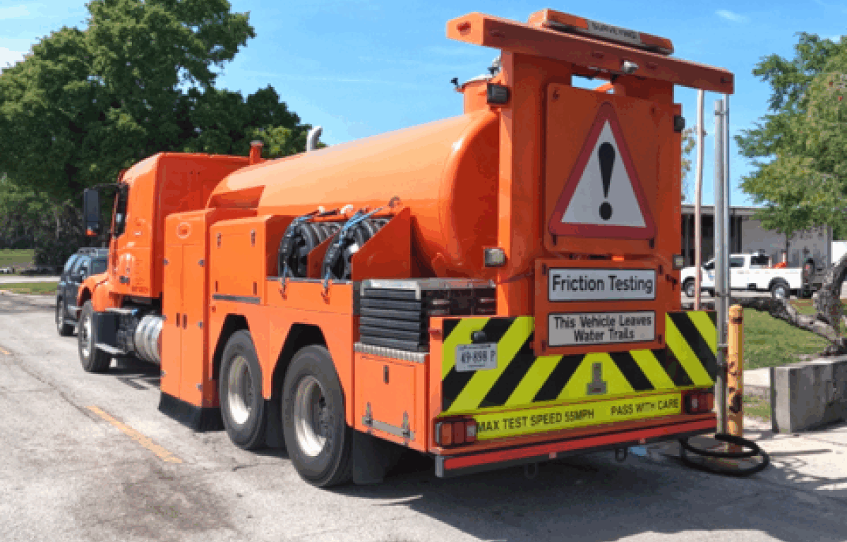 The vehicles will travel approximately 1,761 miles of state roadway across the district in the coming weeks. As they move, the SCRIMs will apply a three-to-four-inch trail of water on the roadway’s surface. An onboard measurement mechanism will continuously measure friction across the pavement as it travels, including through curves, grade changes, intersections, on/off ramps and work zones – places where friction is the most critical to safe maneuvering. The SCRIM is only spraying water on the roadway, which is expected to evaporate within 10 minutes.