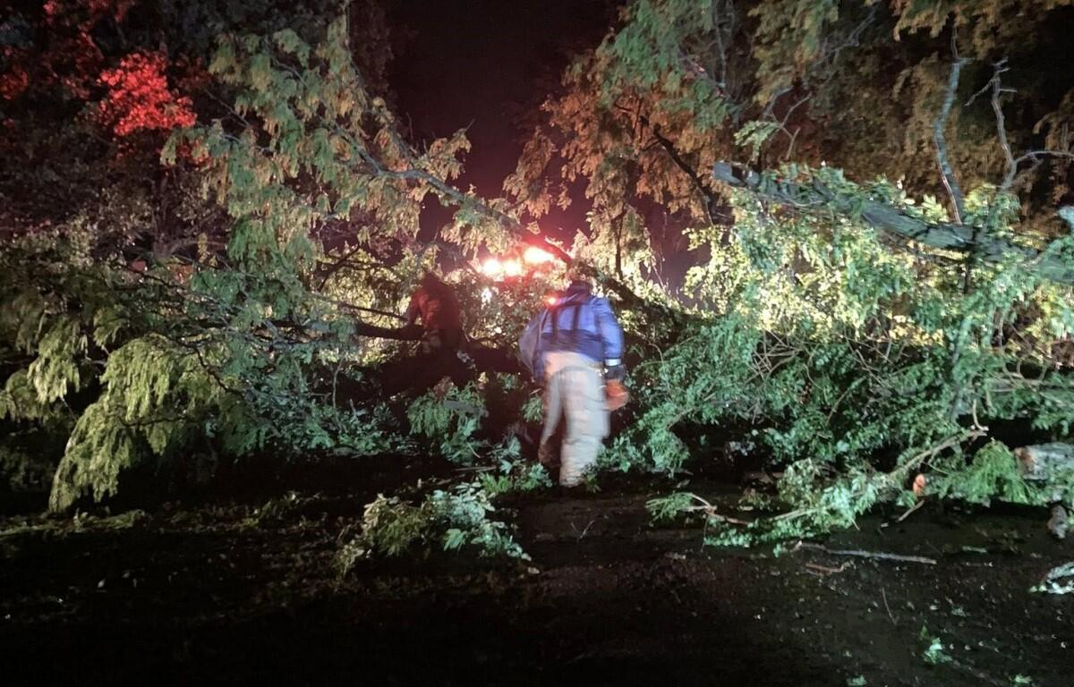 Pembroke Fire Department spent time overnight attending to downed trees and power lines that had fallen on roads in their area of the county. They shared that residents should remain cautious when traveling because debris and fallen branches may still be present.