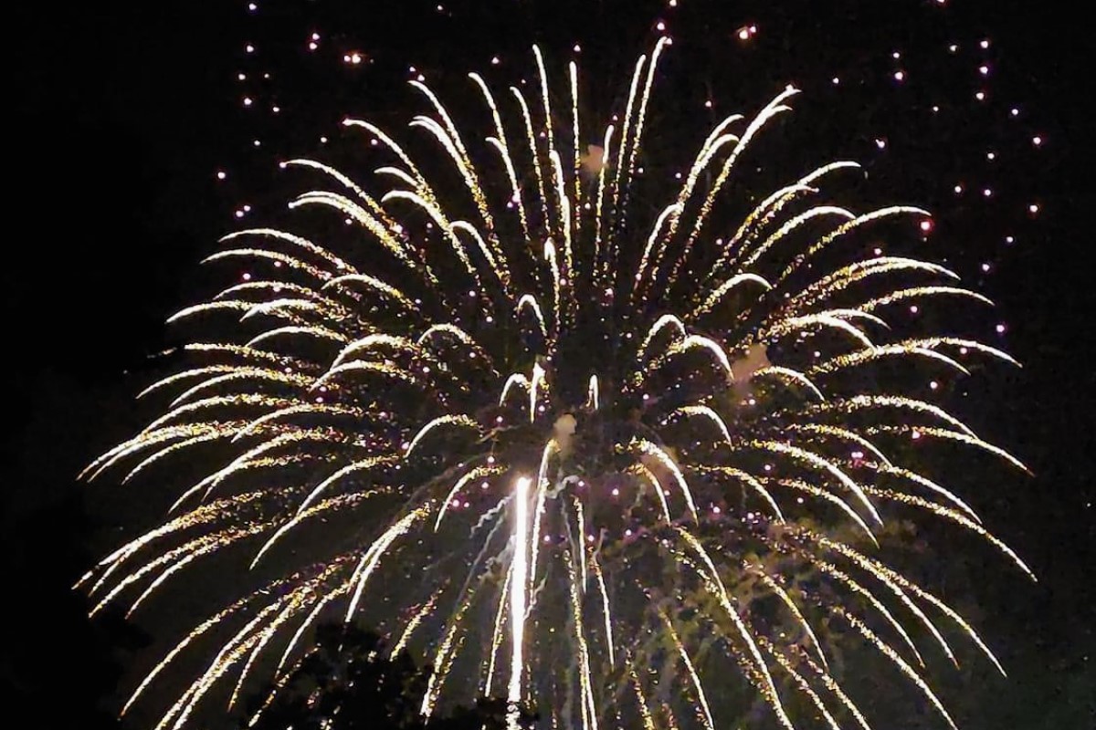 Hundreds of people gathered at the park to watch the spectacular show and join in on the festivities including music, food trucks, and bounce castles.