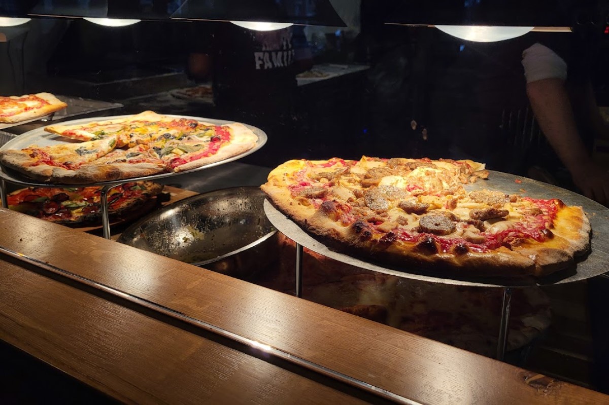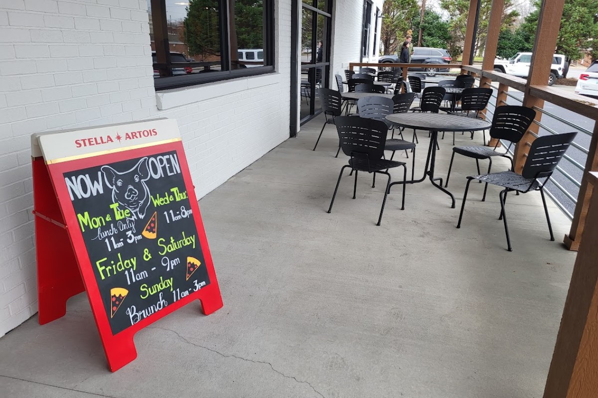 On the menu are appetizers like house made pork rinds, an array of sandwiches, and flights of mason jar desserts. When it comes to their signature pizza’s, brick oven fired pies include The Crusty Pig pizza with onions, pulled pork, barbecue sauce, and pork rinds, along with other unique and classic topping combinations on other pizzas. During lunch hours, people can buy by the slice, with community tables available for casual eating.