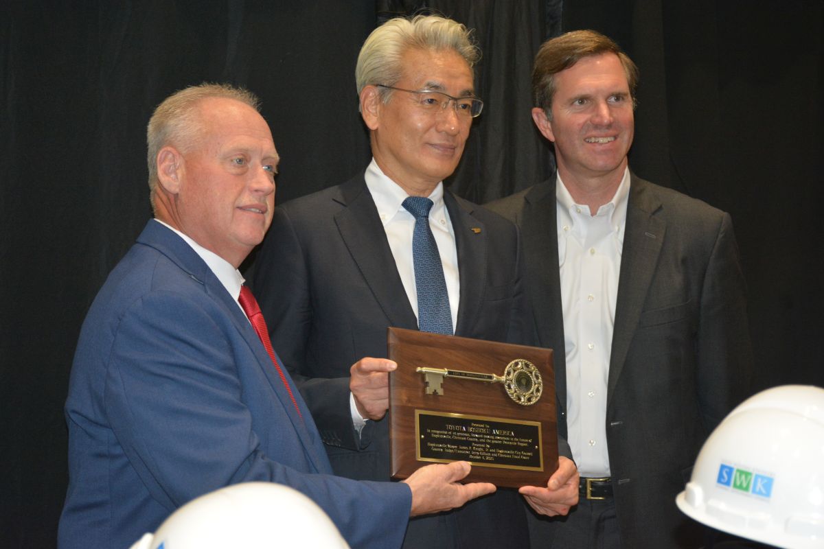 Hopkinsville Mayor James Knight was joined by Gilliam in the presentation of a key to the city to Masayoshi Shirayanagi, Toyota Boshoku Corp. president/CEO.
