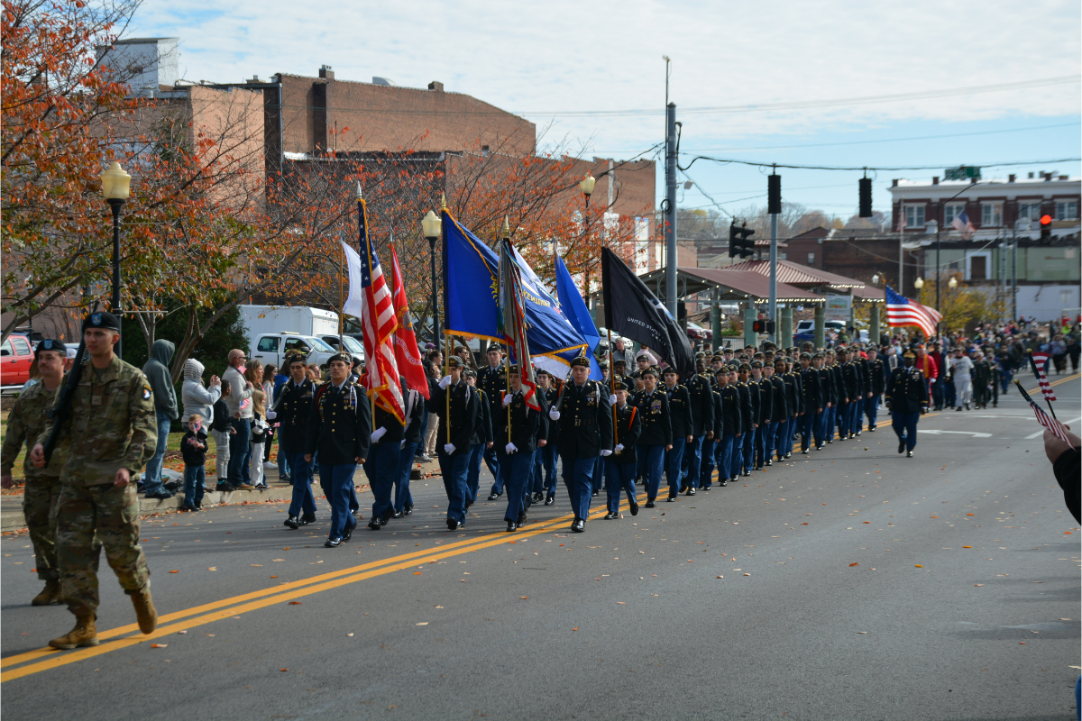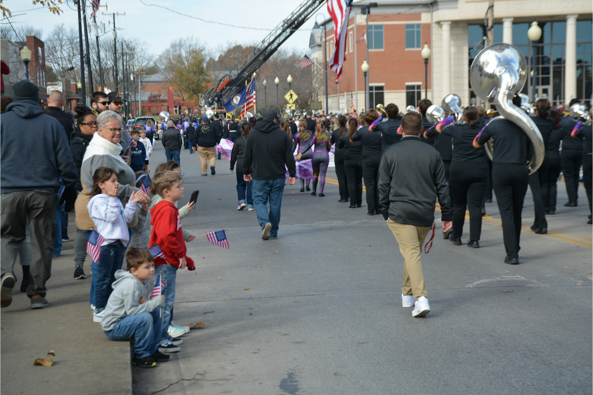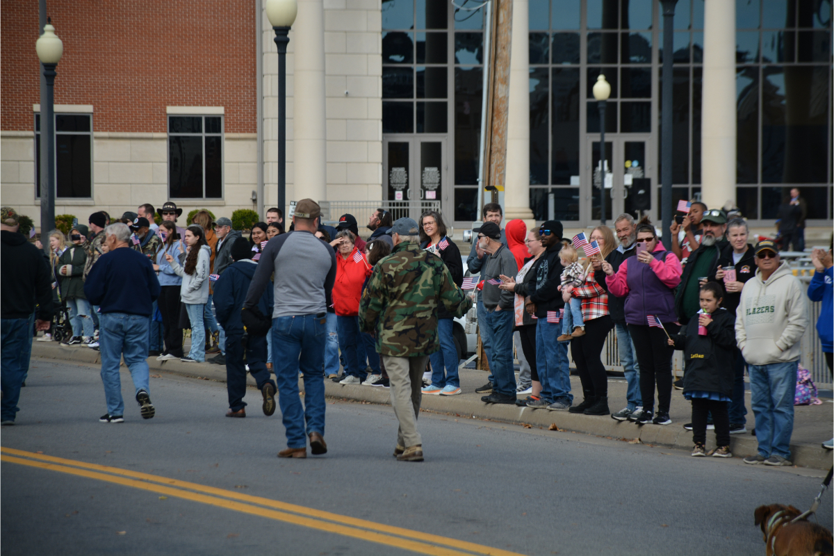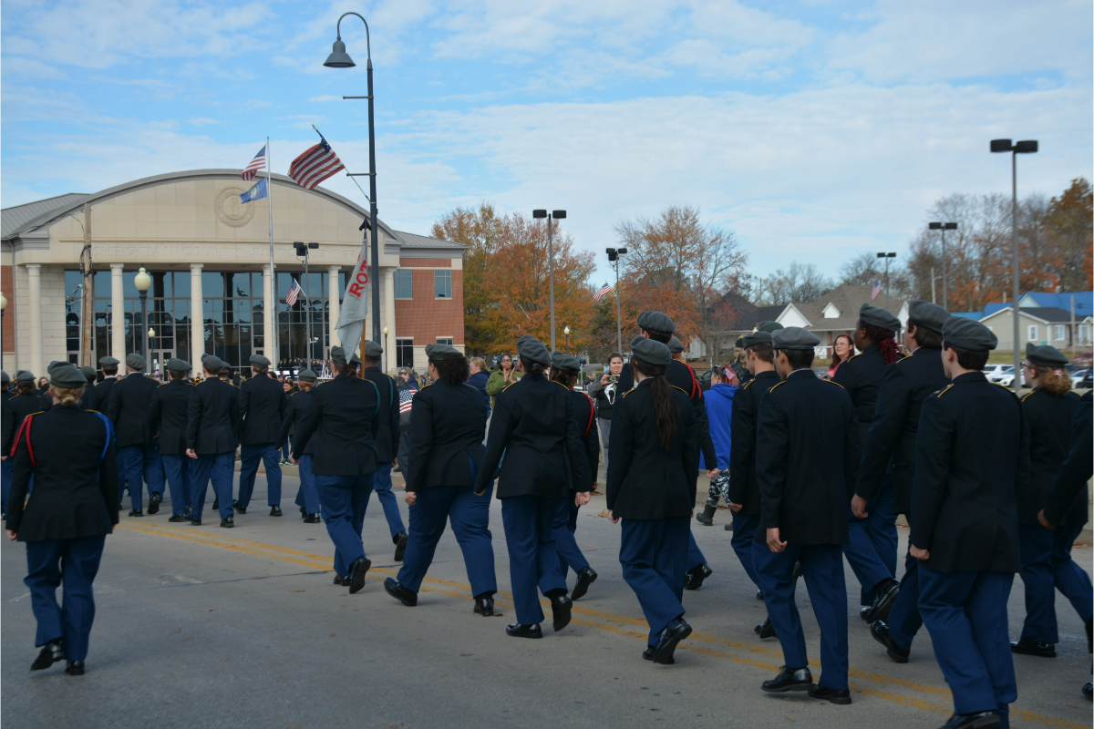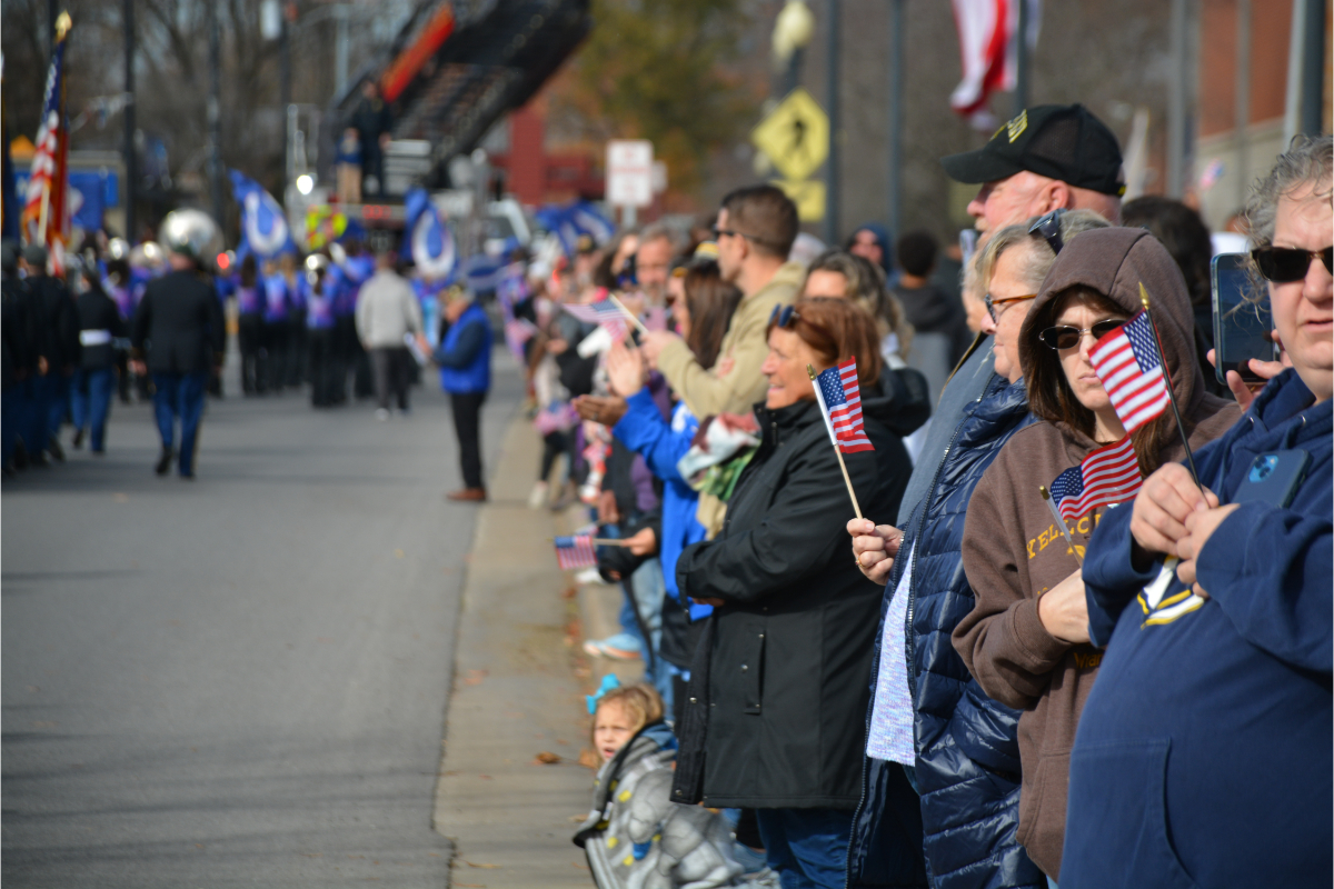 Hundreds of people lined the road with flags as JROTC students and marching bands honored the veterans of this community. The parade concluded with a closing ceremony at the Justice Center.