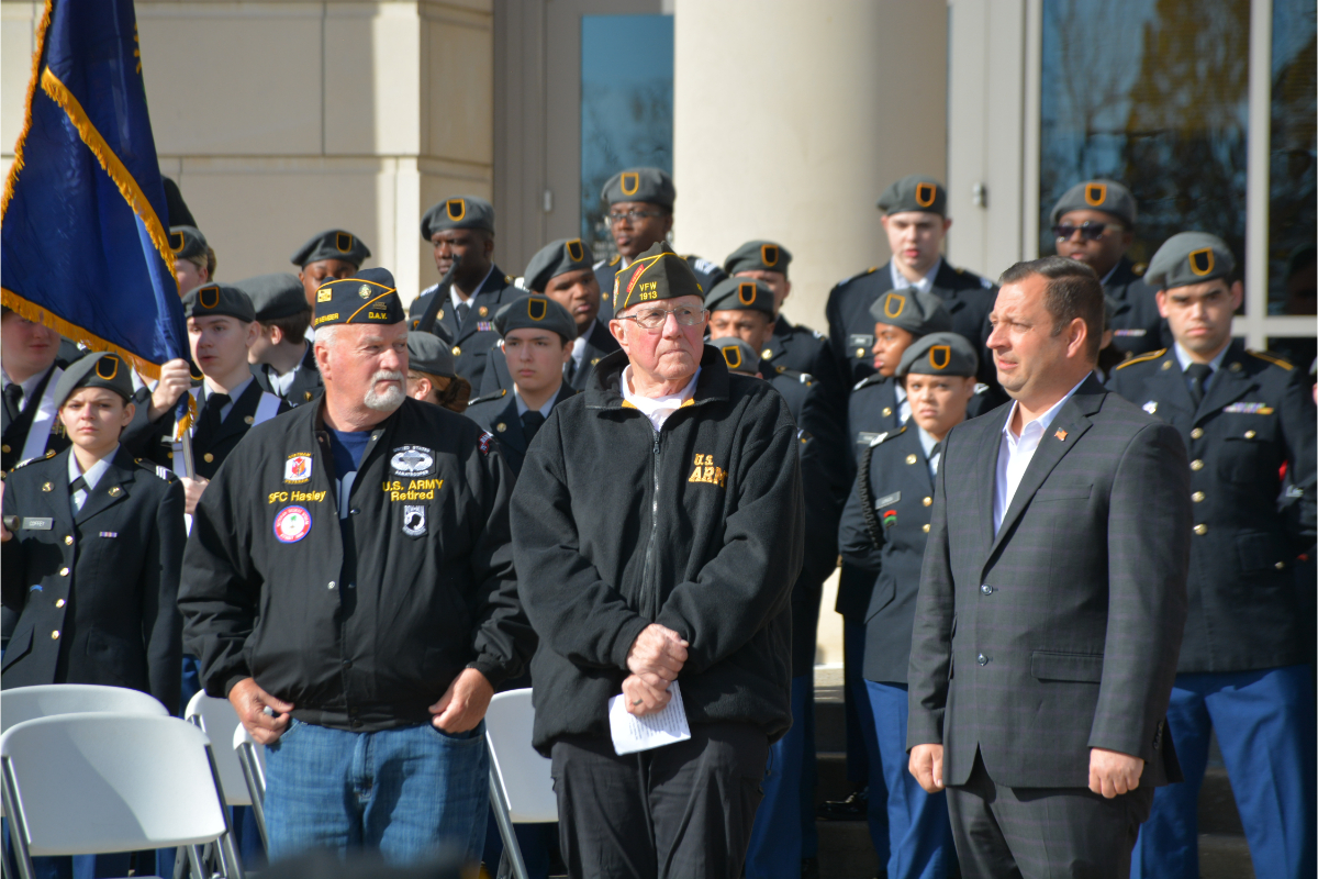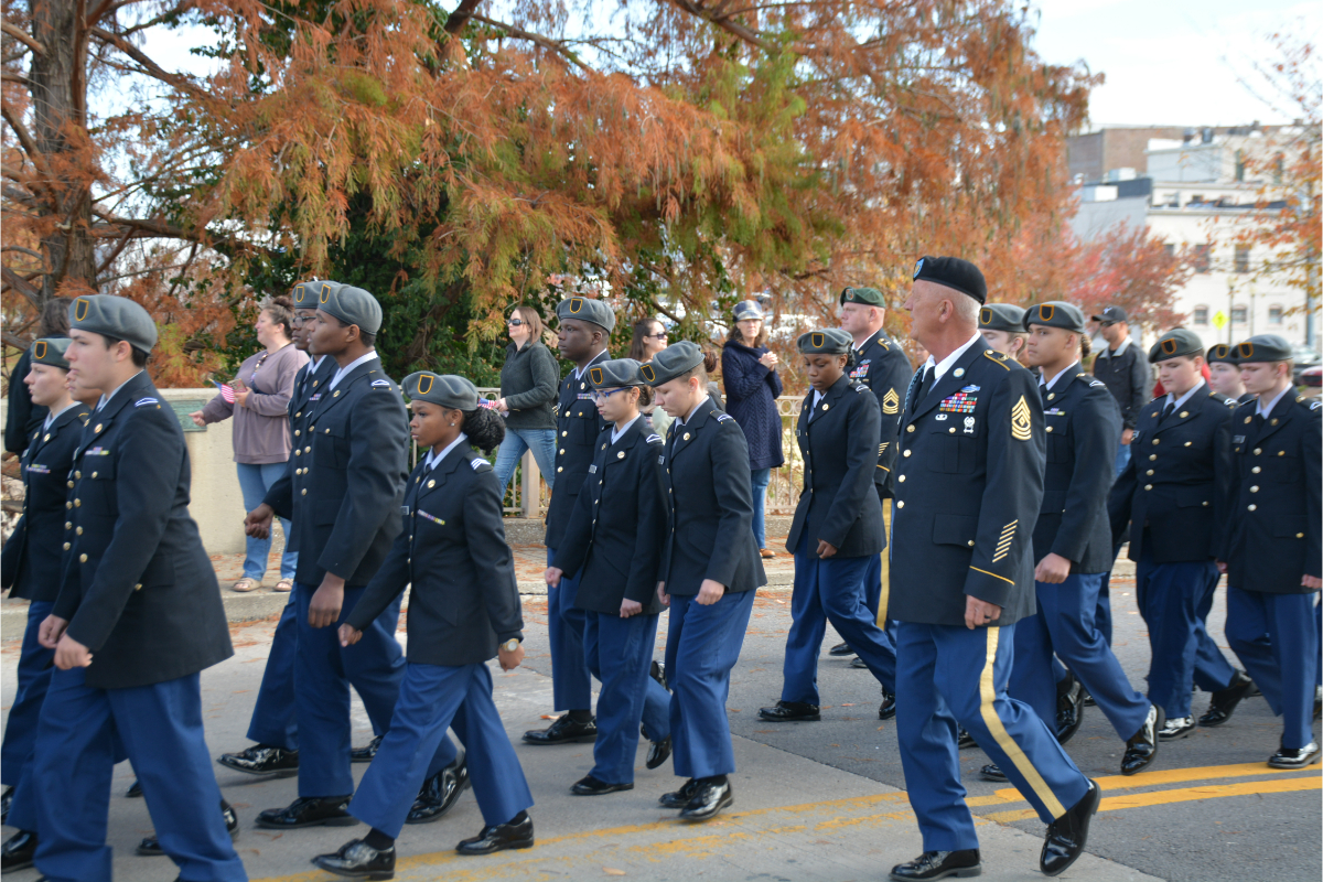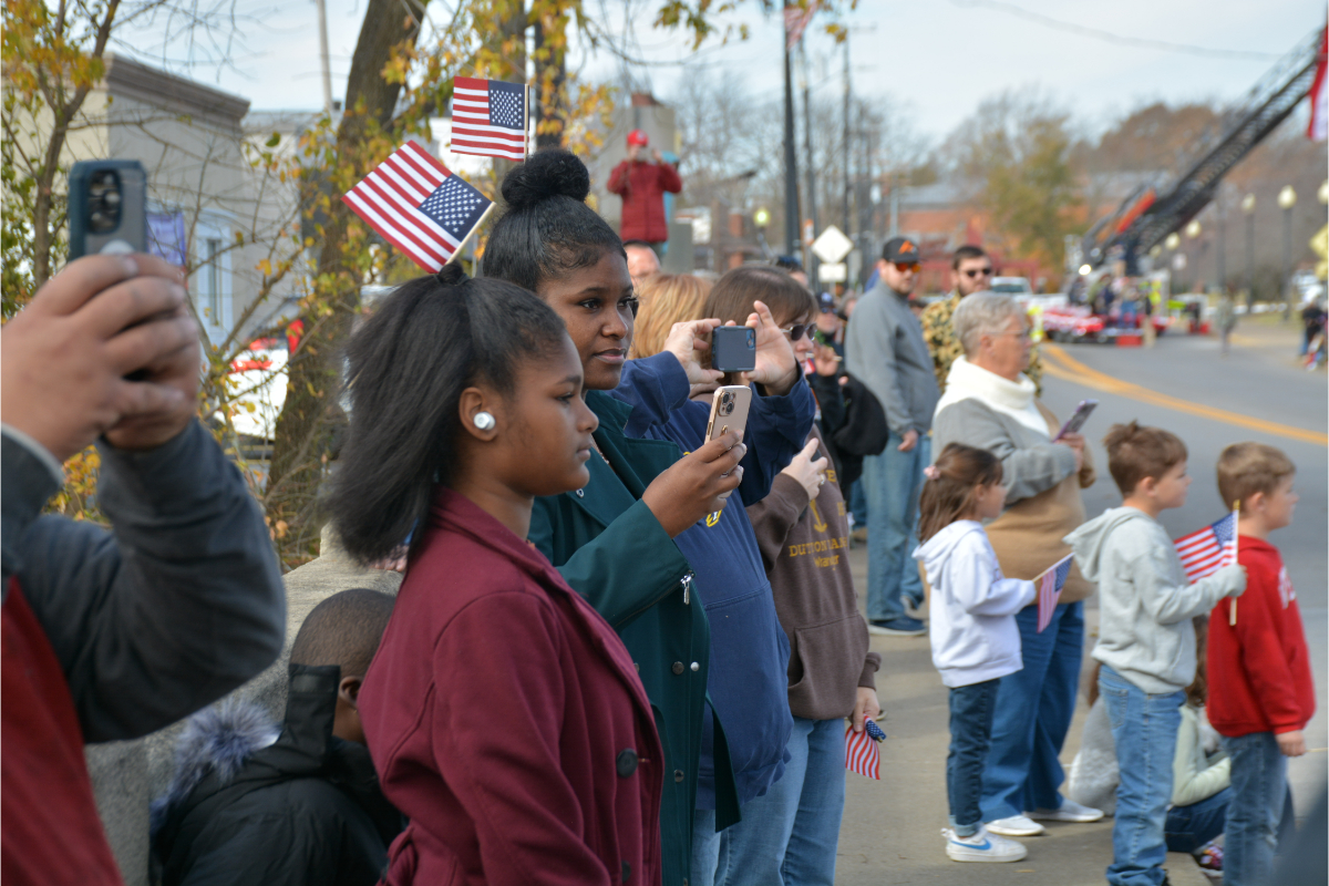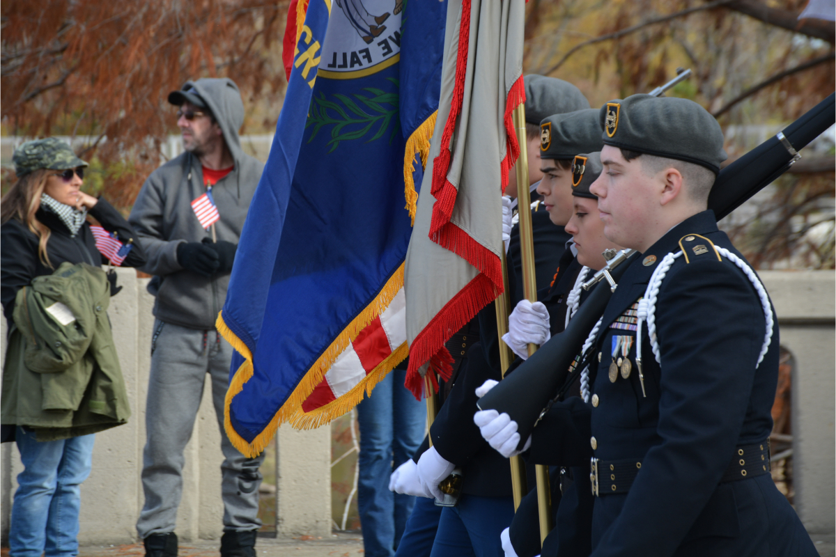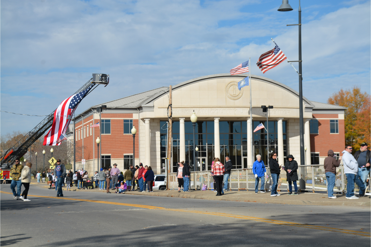 Hundreds of people lined the road with flags as JROTC students and marching bands honored the veterans of this community. The parade concluded with a closing ceremony at the Justice Center.