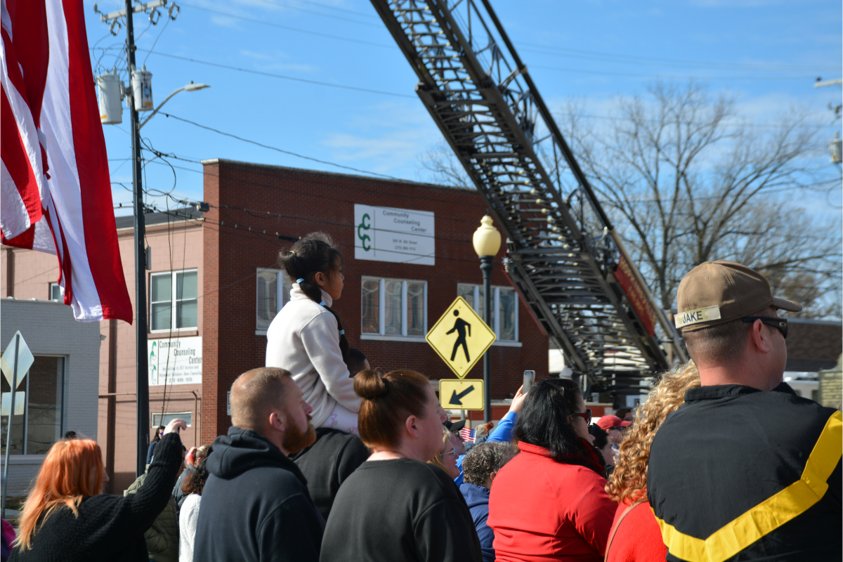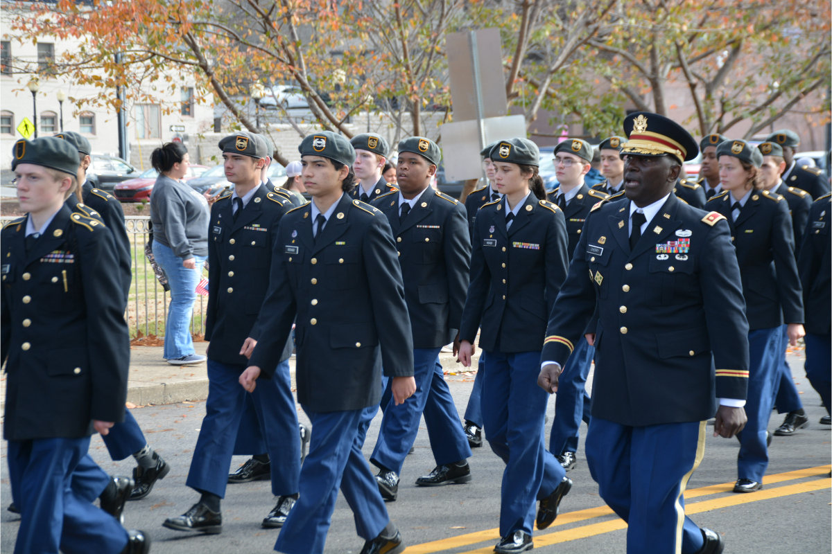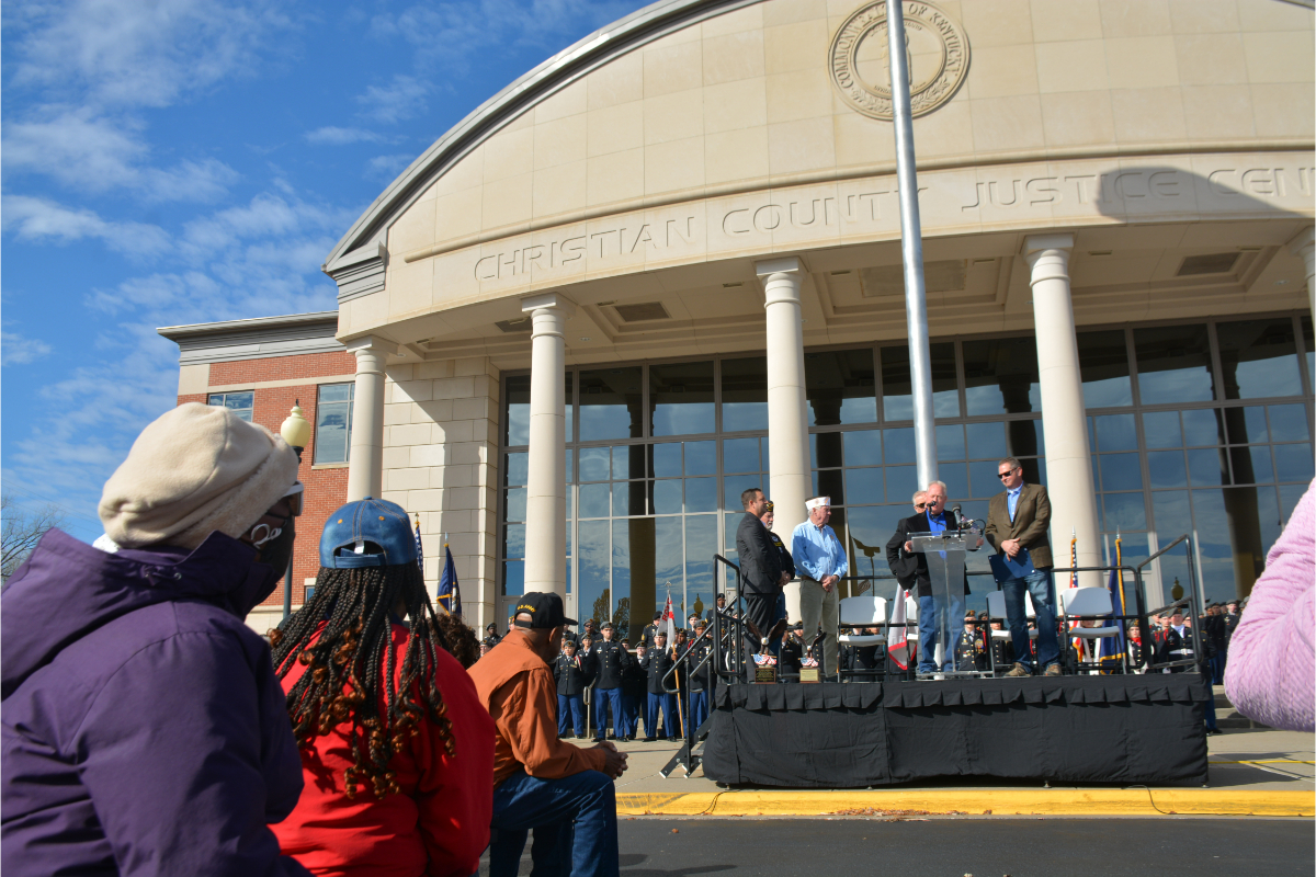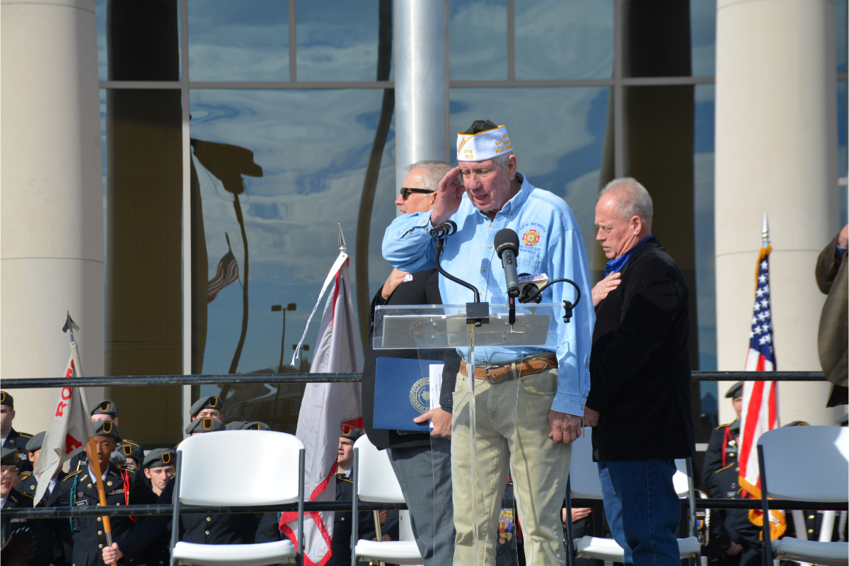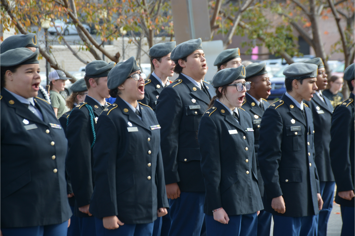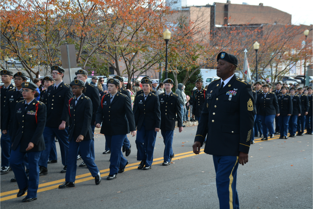 Hundreds of people lined the road with flags as JROTC students and marching bands honored the veterans of this community. The parade concluded with a closing ceremony at the Justice Center.