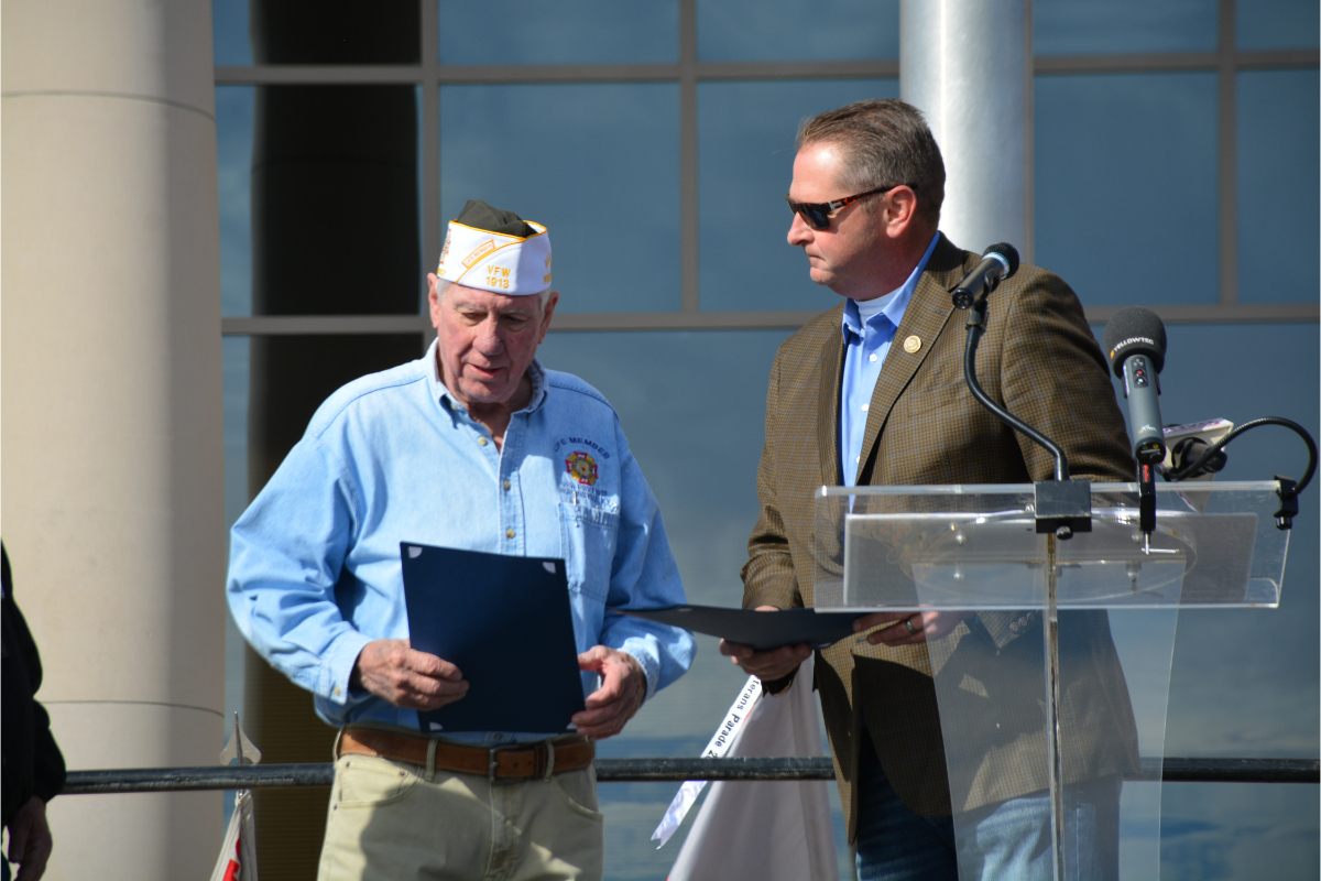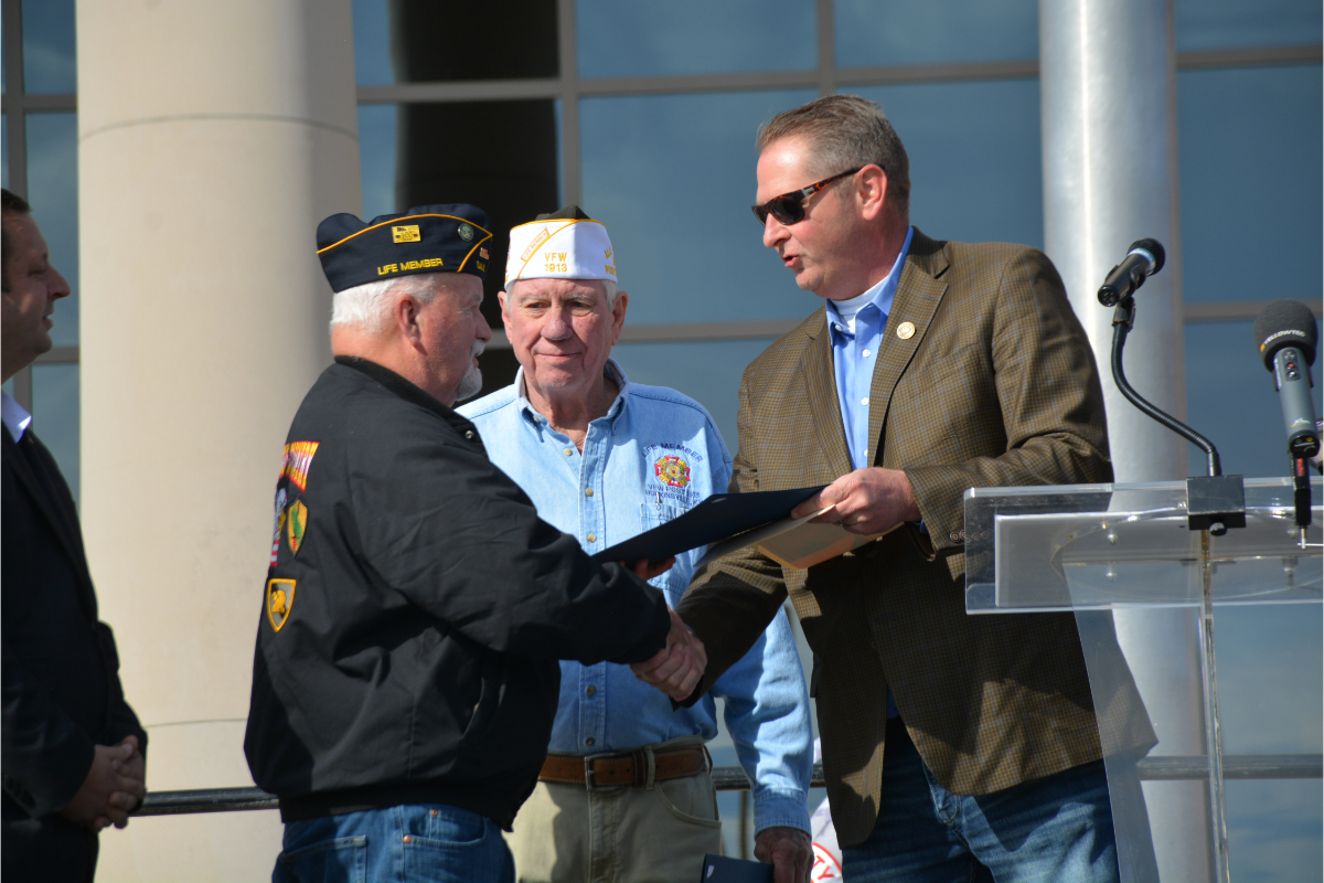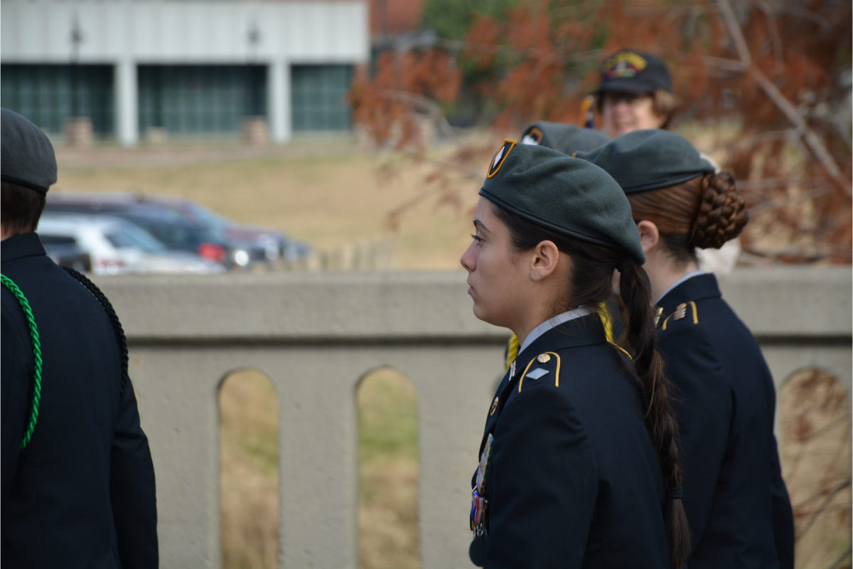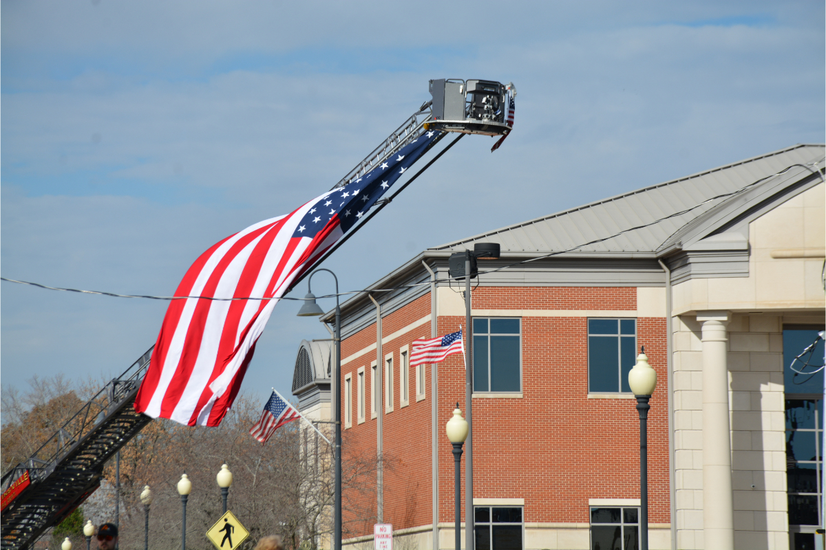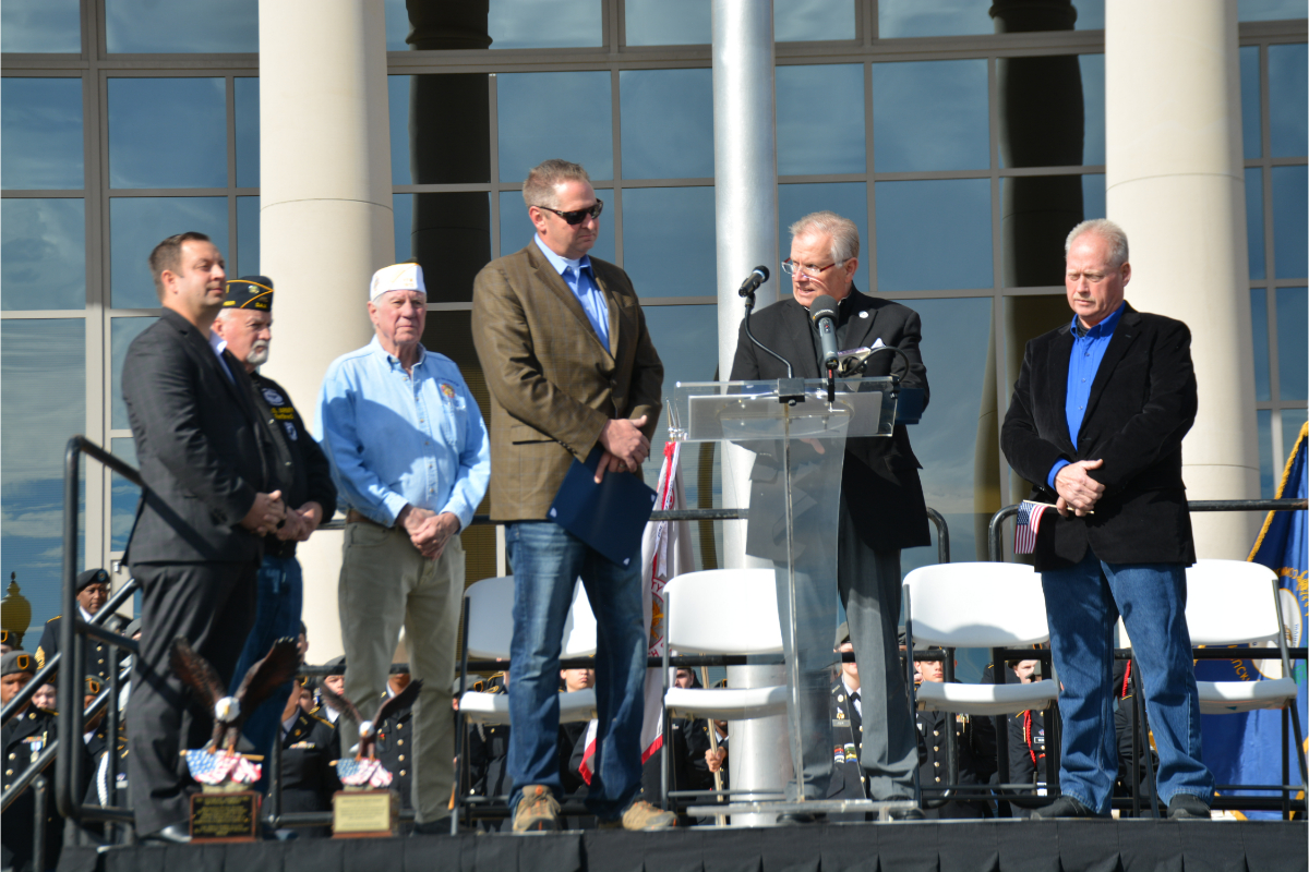 Hundreds of people lined the road with flags as JROTC students and marching bands honored the veterans of this community. The parade concluded with a closing ceremony at the Justice Center.