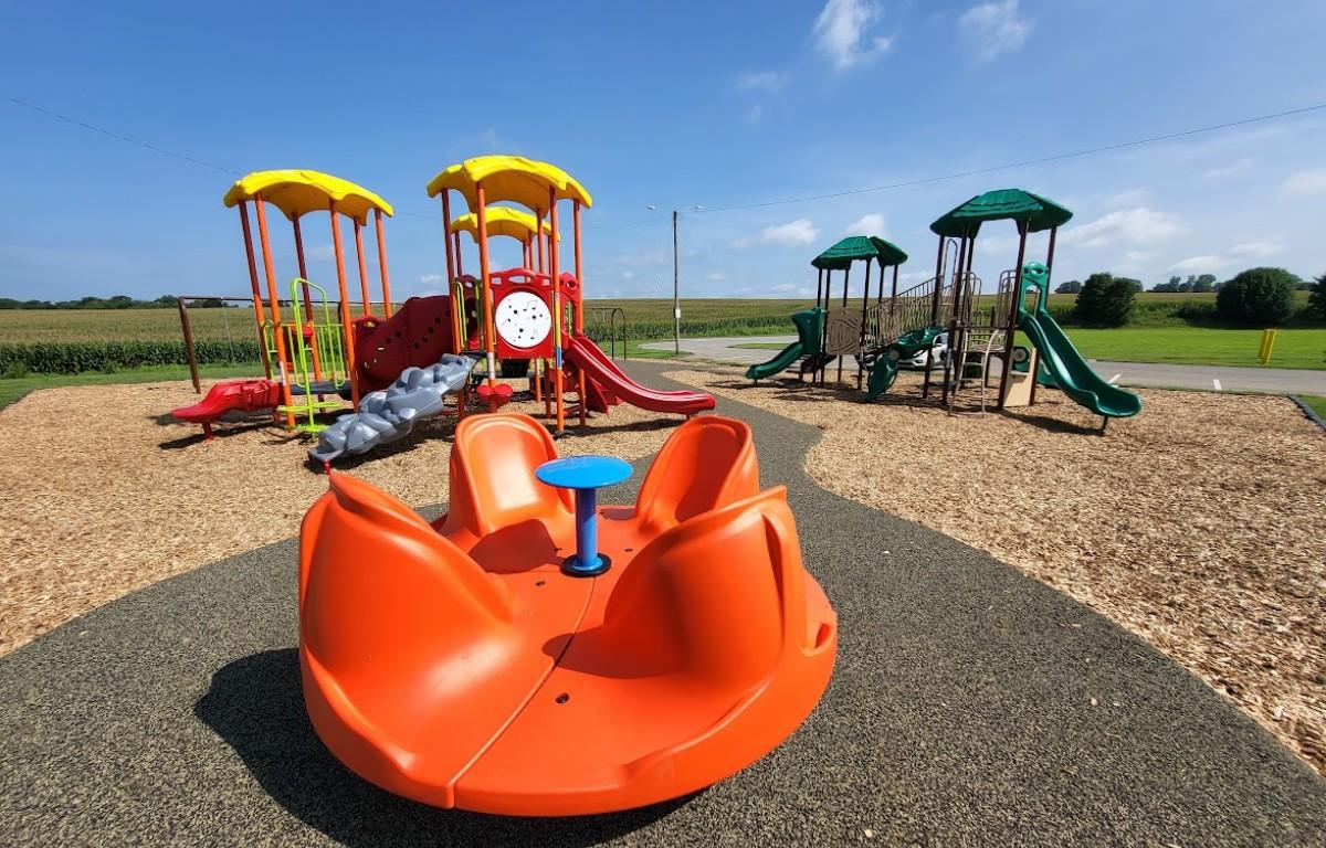 With ADA accessibility in mind, the playground consists of wood fiber mulch with a poured pathway and access ramp, along with an accessible merry go round and a new swing set with belted seats and other adaptive seat customizations. The park is also home to a large pavilion, restrooms, and a basketball court.