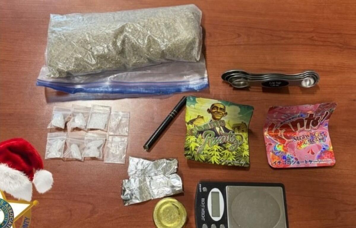 During his arrest, deputies found eight baggies containing methamphetamine, weighing a total of 12 grams. A container in the suspect’s vehicle held approximately 114 grams of synthetic marijuana and digital scales, according to the arrest report. A marijuana cigarette and glass pipe were also found.