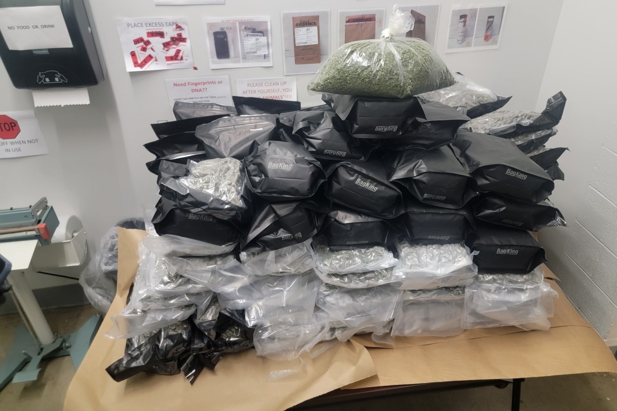 The Hopkinsville Police Department discovered nearly 100 pounds of illicit drugs in a car during a traffic stop on Wednesday.