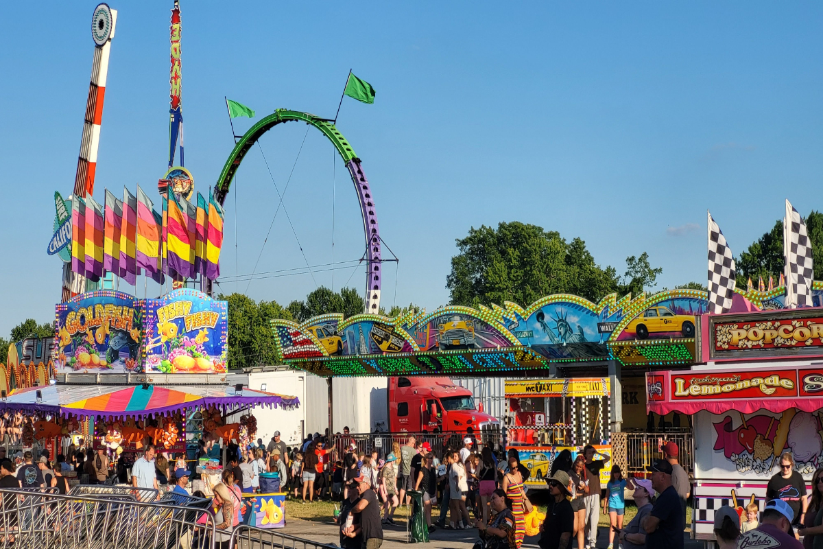 Check out miles of yard sales, watch a juggling performance or baseball game, take a dip in a pool, or see wrestlers at the last night of the fair!