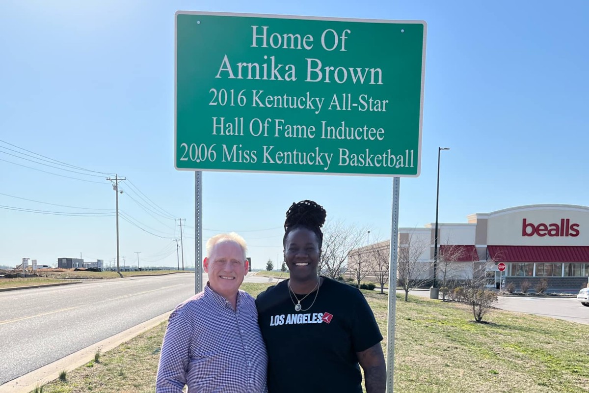Local basketball star Arnika Brown has been recognized by the city with a newly erected street sign sharing her legacy.