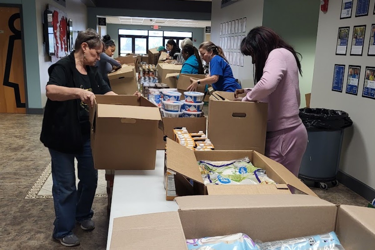 Challenge House, Edgewood Baptist Church and surrounding churches collaborated to pack and distribute Thanksgiving meal boxes.